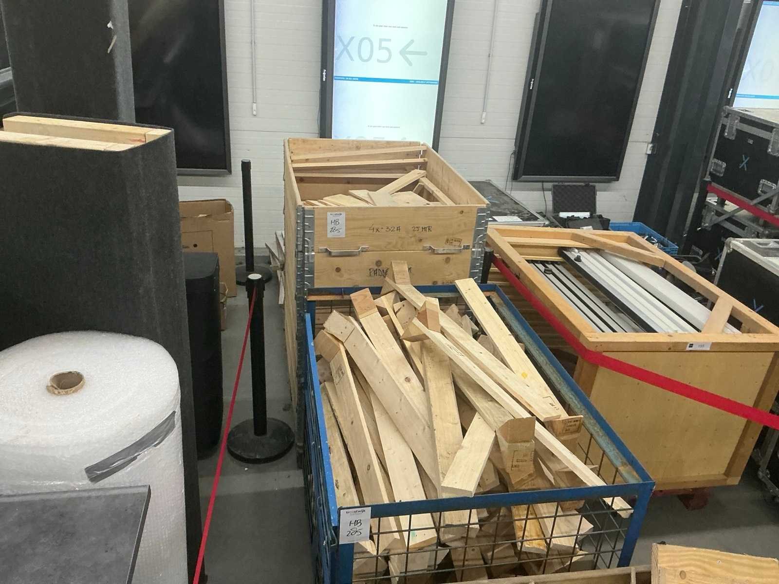 Verschillende soorten en maten resthout.nzonder palletboxen en gitterbox.