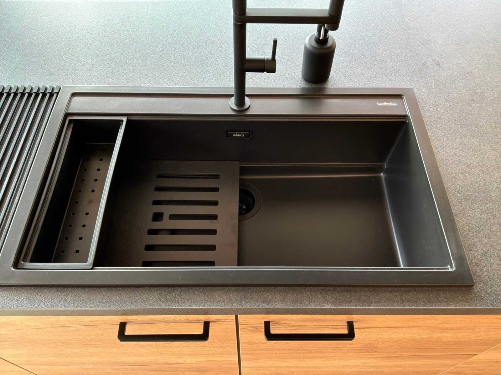 Inclusief 4-pits Bosch inductiekookplaat, 2 barstoelen en inhoud. Merk: Kitchen 4 All Model: Structura Lengte: 60cm Breedte: 320cm Hoogte: 221cm Kraan: Dummy Gootsteen: Elleci Werkblad hoogte: 95cm Magnetron: Bosch HR5B20F0 Fornuis: Elica Koelkast: Bosch KG KILL211A Softclose: true Oven: Bosch HR5B20F0 Afzuigkap: Elica E077 I Vaatwasser: Bosch SL6PW1B Lengte kookeiland: 380cm Breedte kookeiland: 117cm Hoogte kookeiland: 95cm