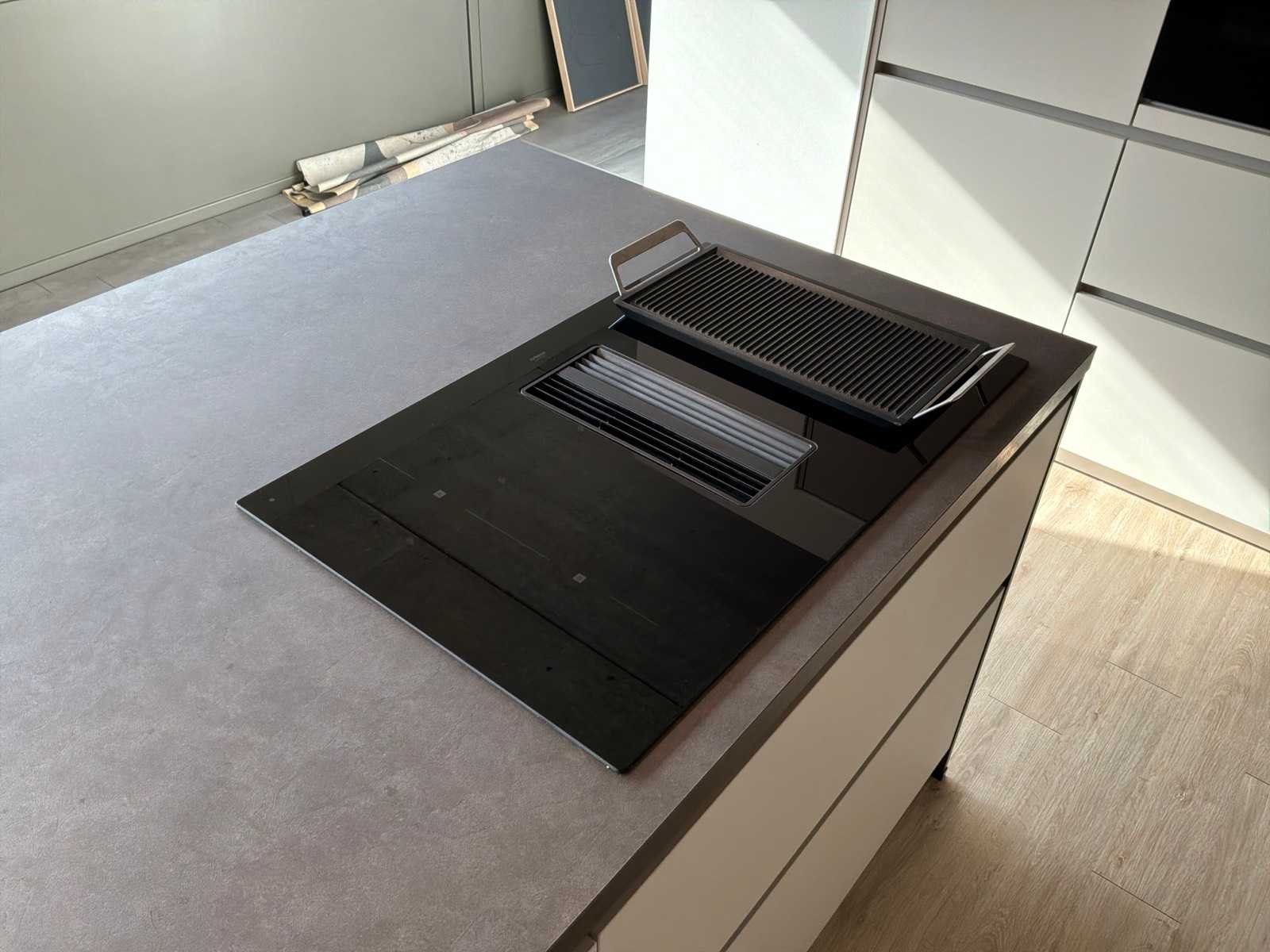 Voorzien van een 4-pits airforce inductiekookplaat, inclusief inhoud en barstoelen. Merk: Kitchen 4 All Model: Structura Lengte: 58.5cm Breedte: 395cm Hoogte: 226cm Kraan: NOBLI Gootsteen: TEKA Werkblad hoogte: 93cm Magnetron: Siemens HT6B40F0S Koelkast: Siemens KG KIRR291A Softclose: true Oven: Siemens HT6B40F0S Afzuigkap: Airforce induction Inbouw Vaatwasser: Siemens SL6PW1S Lengte kookeiland: 340cm Breedte kookeiland: 130cm Hoogte kookeiland: 93cm
