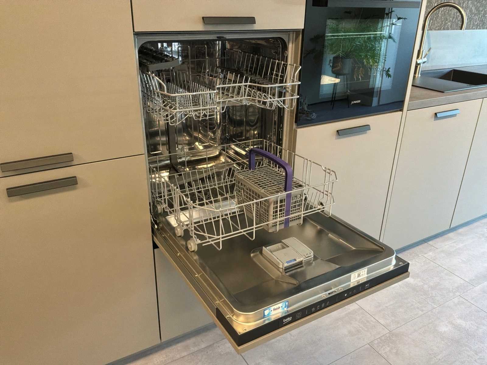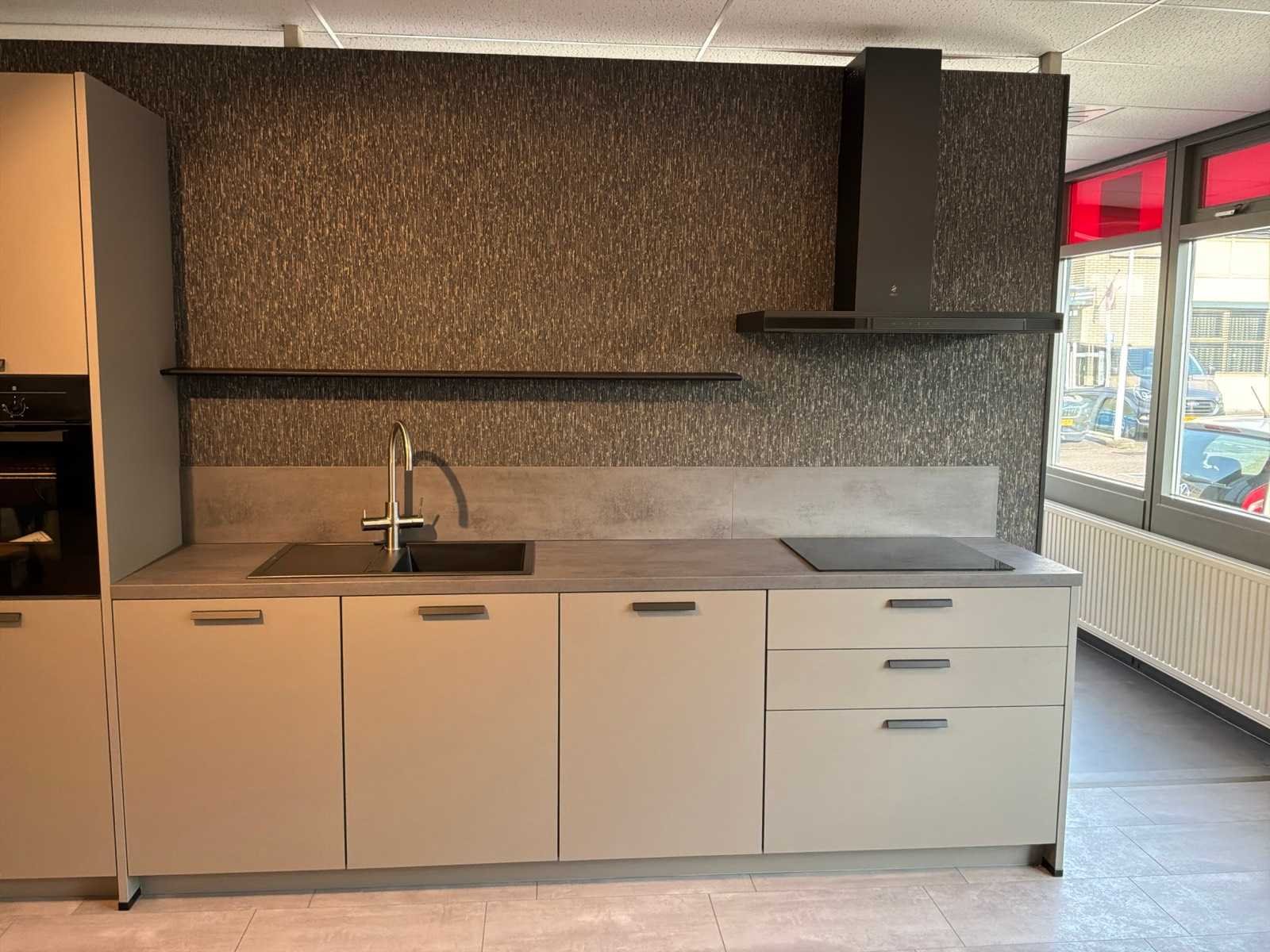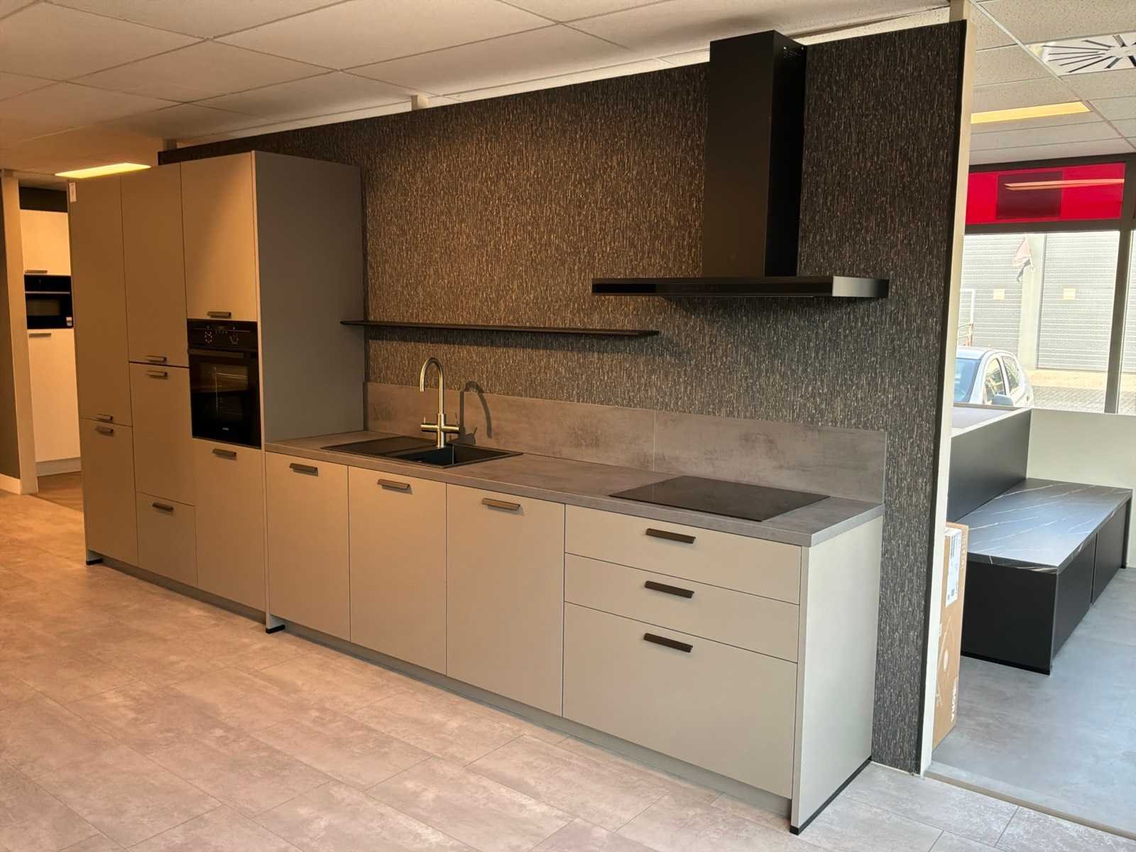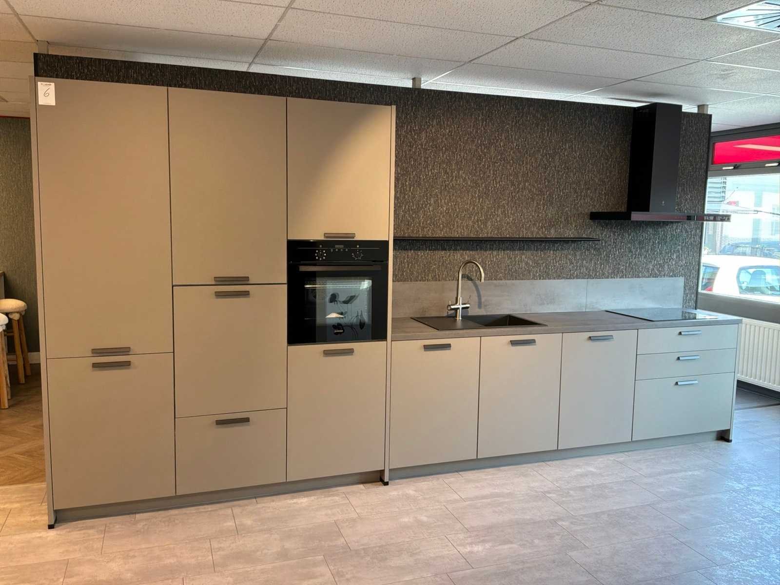 Voorzien van een unito boiler watersysteem. Inclusief overig installatiemateriaal en gebruikershandleidingen. Lengte: 460cm Breedte: 60cm Hoogte: 230cm Kraan: ACE opzetstuk zonder onderbouwapparatuur Gootsteen: Elleci Werkblad hoogte: 93,5cm Magnetron: JUNKER JF2306061 Koelkast: Beko L54215B Softclose: true Oven: JUNKER JF2306061 Afzuigkap: Elica Adele BL Mat/A/90 Vaatwasser: Beko BDIN14N22
