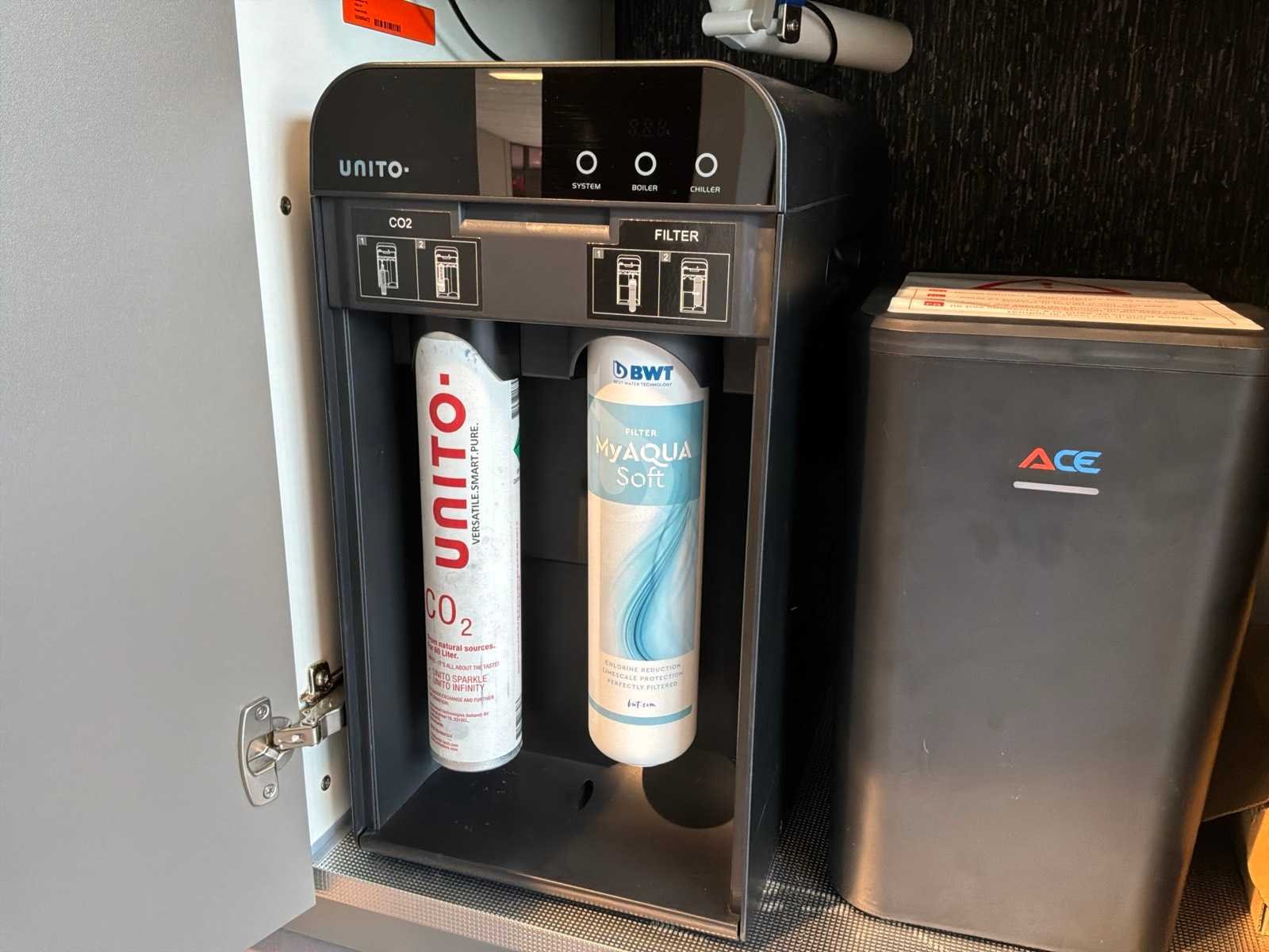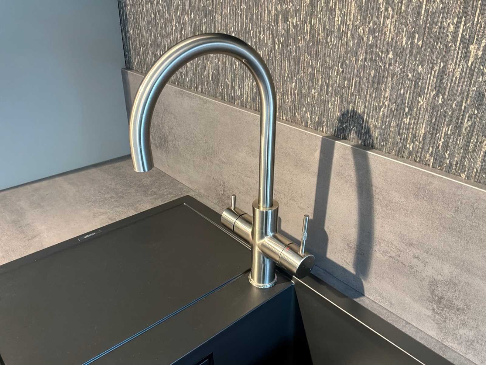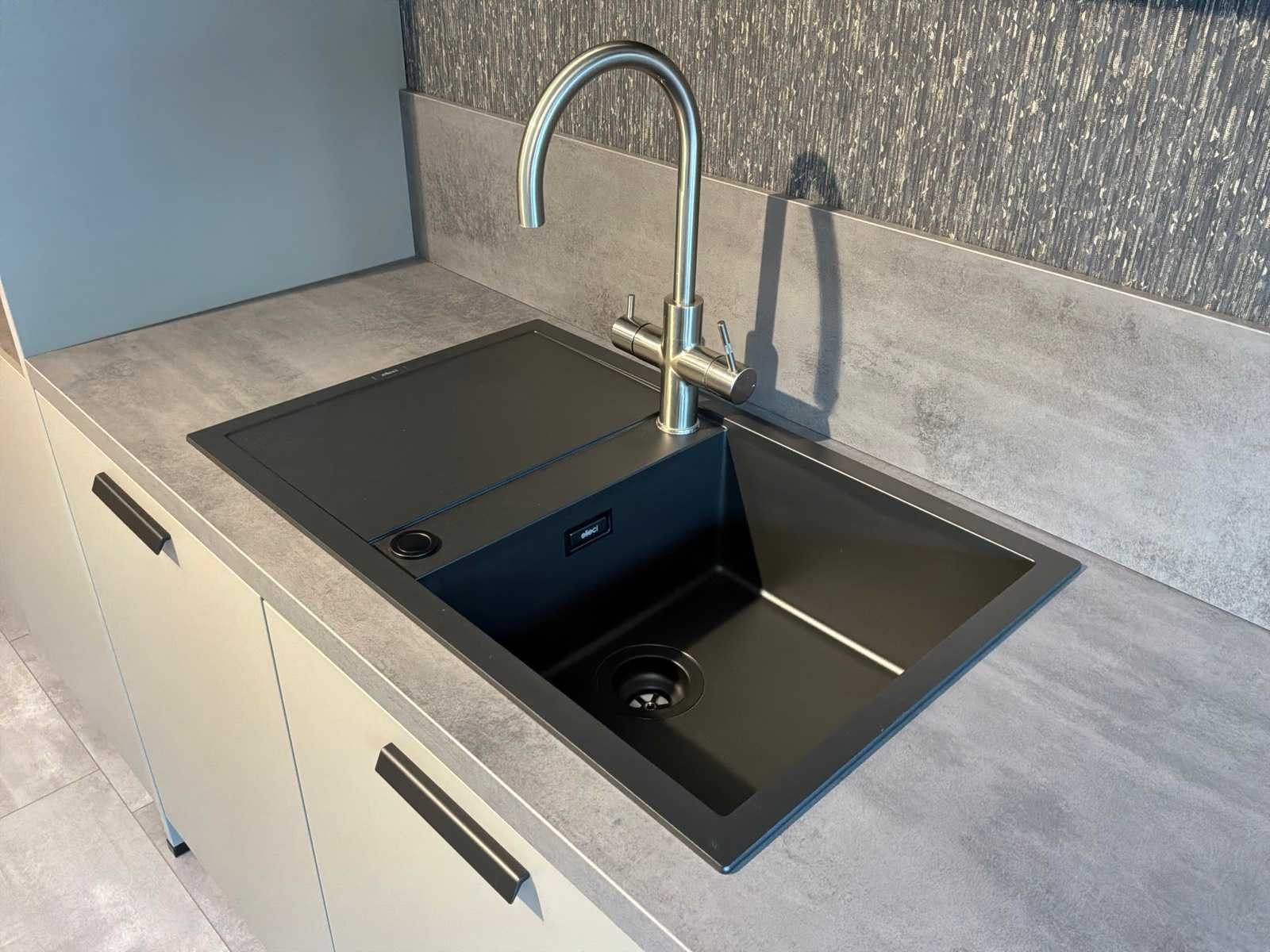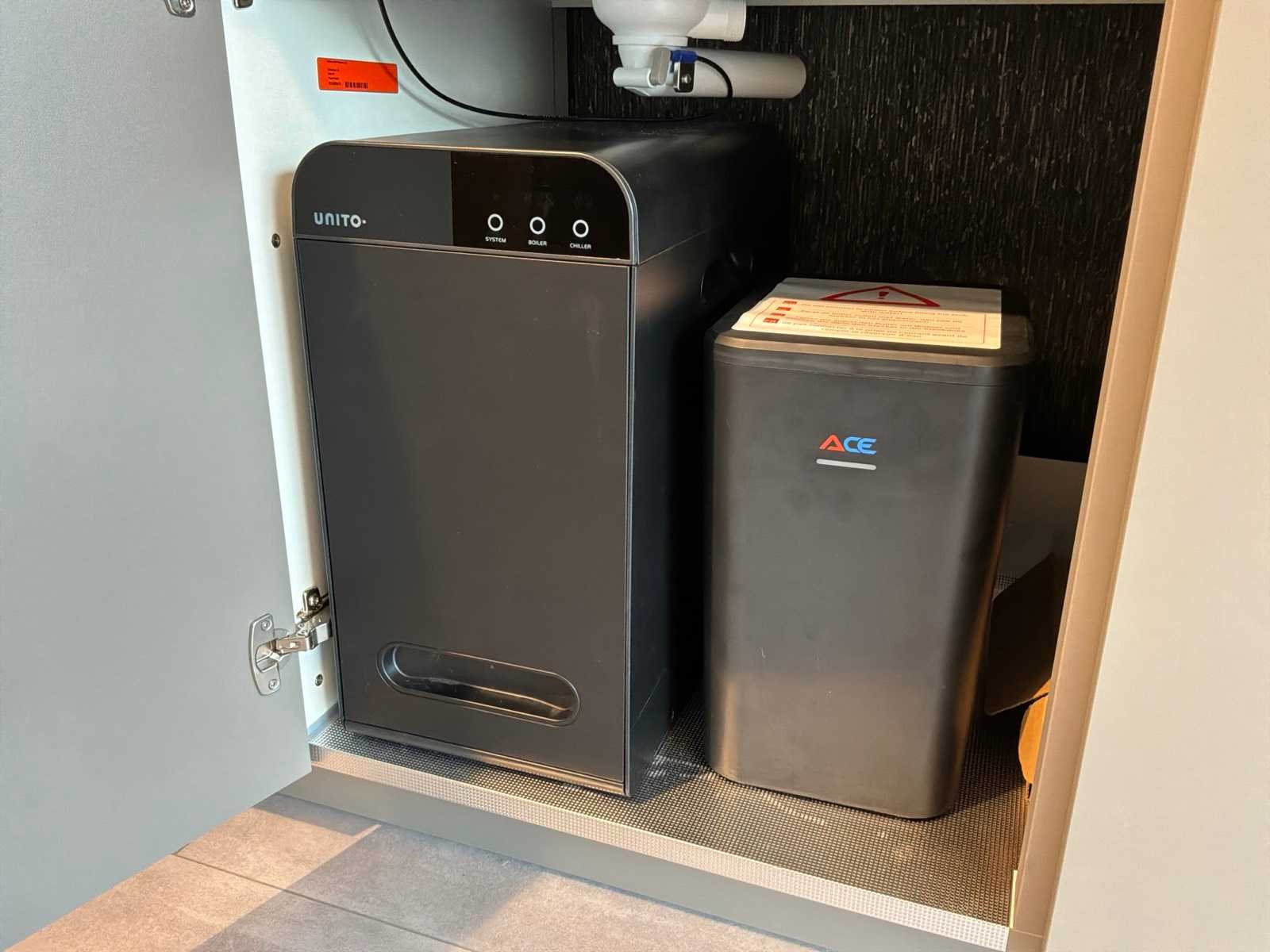 Voorzien van een unito boiler watersysteem. Inclusief overig installatiemateriaal en gebruikershandleidingen. Lengte: 460cm Breedte: 60cm Hoogte: 230cm Kraan: ACE opzetstuk zonder onderbouwapparatuur Gootsteen: Elleci Werkblad hoogte: 93,5cm Magnetron: JUNKER JF2306061 Koelkast: Beko L54215B Softclose: true Oven: JUNKER JF2306061 Afzuigkap: Elica Adele BL Mat/A/90 Vaatwasser: Beko BDIN14N22