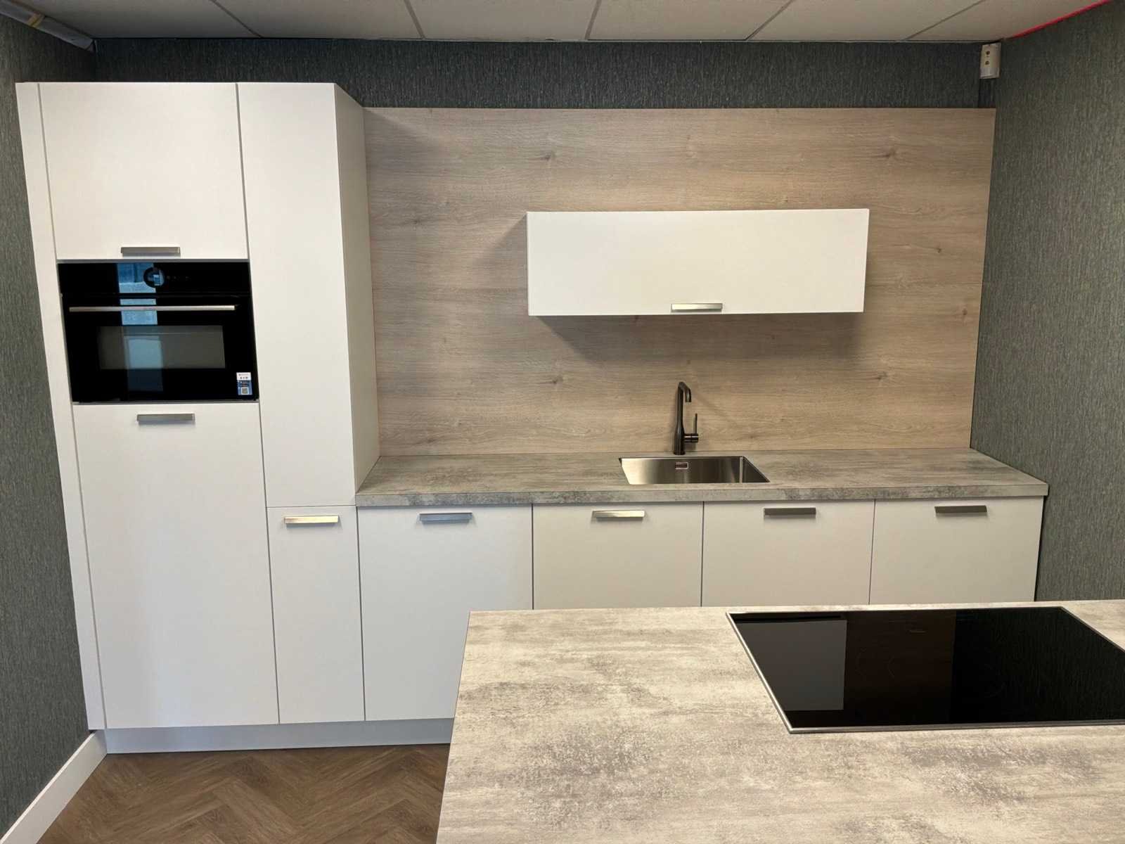 Magnetron voorzien van homeconnect, inclusies Beko 3 pits inductiekookplaat. Inclusief tekeningen en overig installatie materiaal. Merk: Hailo Model: Dispensa vvs-x Lengte: 238cm Breedte: 60cm Hoogte: 230cm Kraan: Grohe Gootsteen: Lanesto Werkblad hoogte: 98,5cm Magnetron: Bosch HT6B3EC0S Koelkast: Bosch KG KIRR271A Softclose: true Lengte kookeiland: 196cm Breedte kookeiland: 99cm Hoogte kookeiland: 98cm