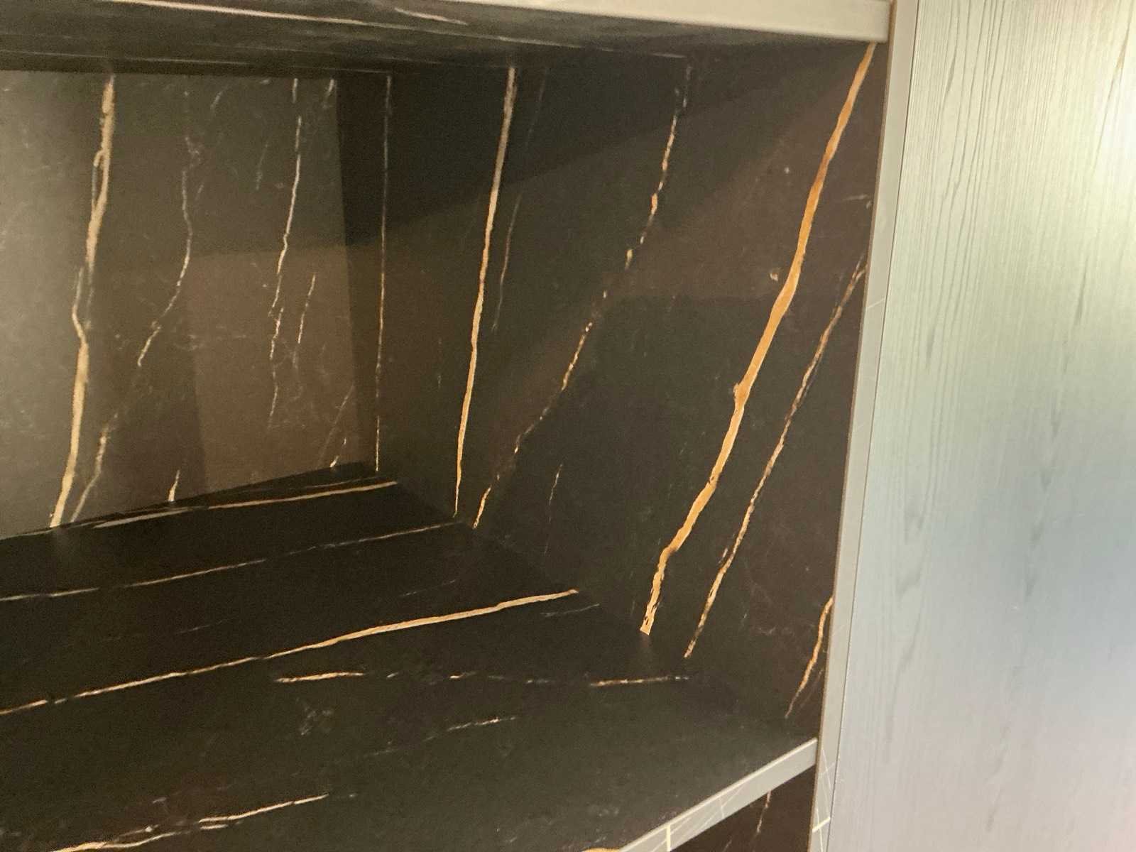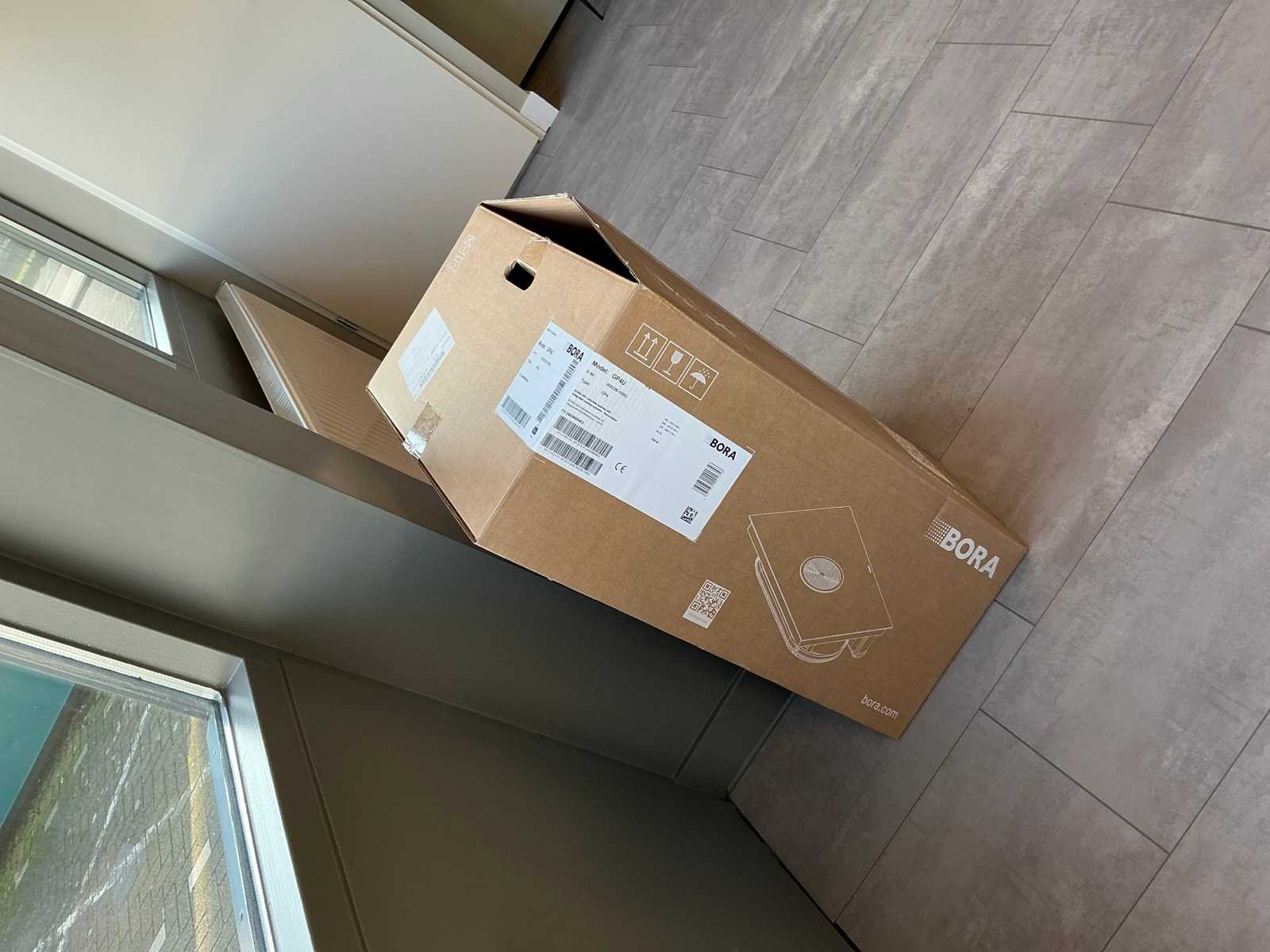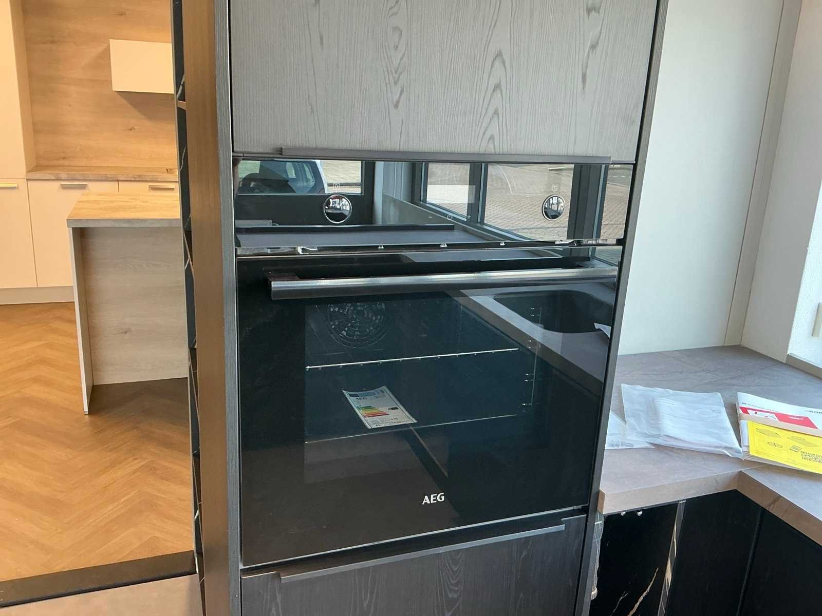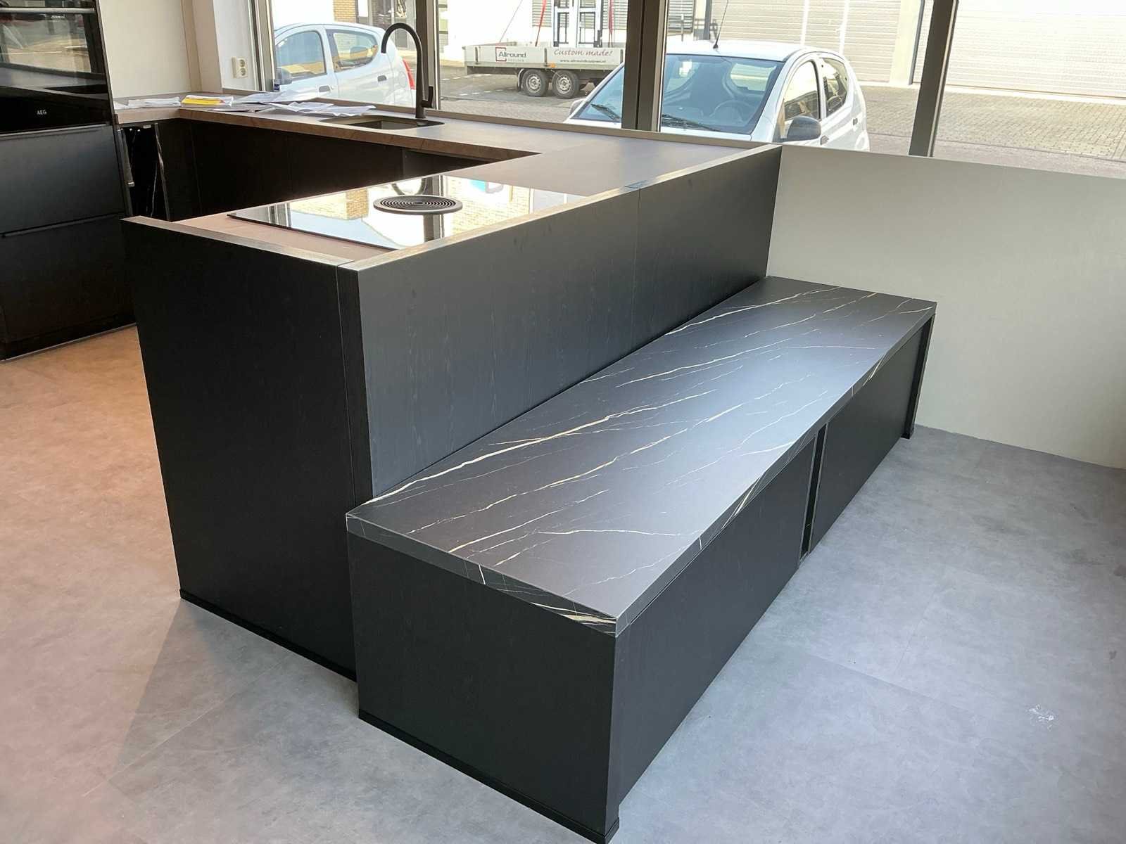 Voorzien van een Bora GP4U inductiekookplaat met afzuiging. Met hoekkast van 60x228cm wandkast met 2 planken 248x60x213cm en voorkast 220x60x50cm Merk: Nobillia Lengte: 318cm Breedte: 220cm Hoogte: 228cm Kraan: Gessi Werkblad hoogte: 94cm Magnetron: AEG BEK43511XB Koelkast: Bosch KG KIVV36A