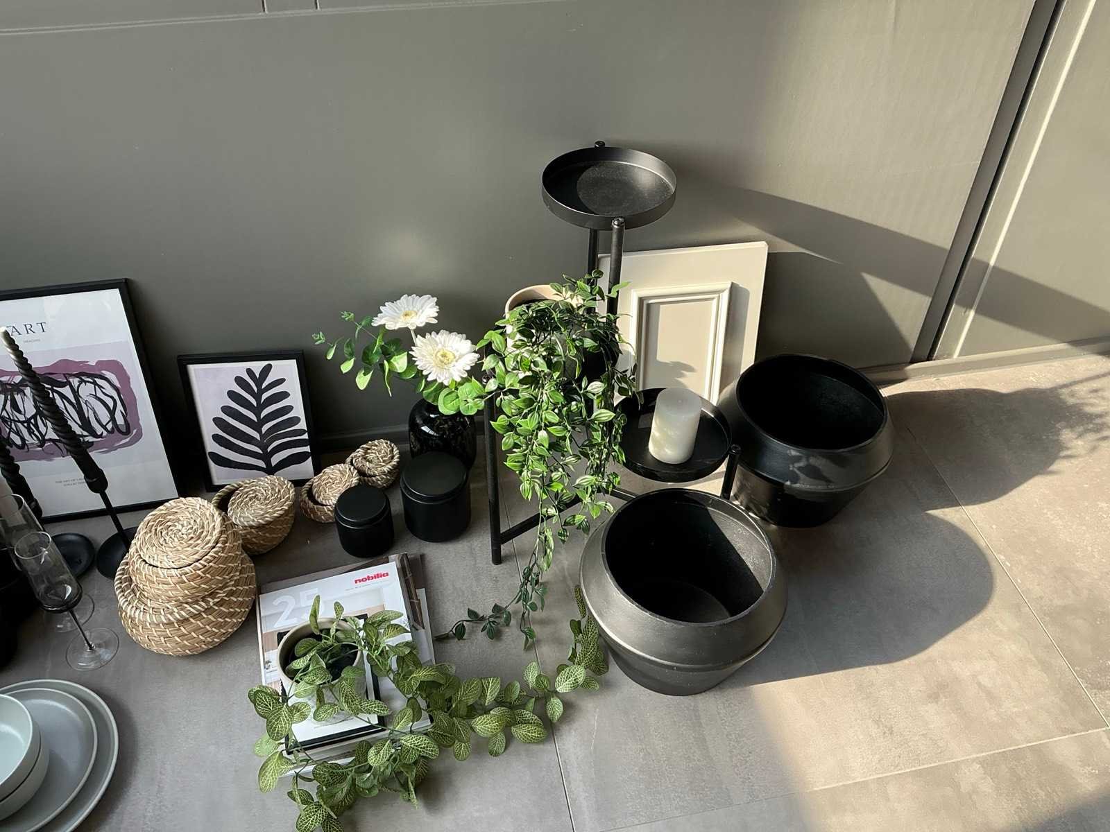 Verschillende soorten en maten waaronder kunstplanten, etagiere, vazen en kaarsen.