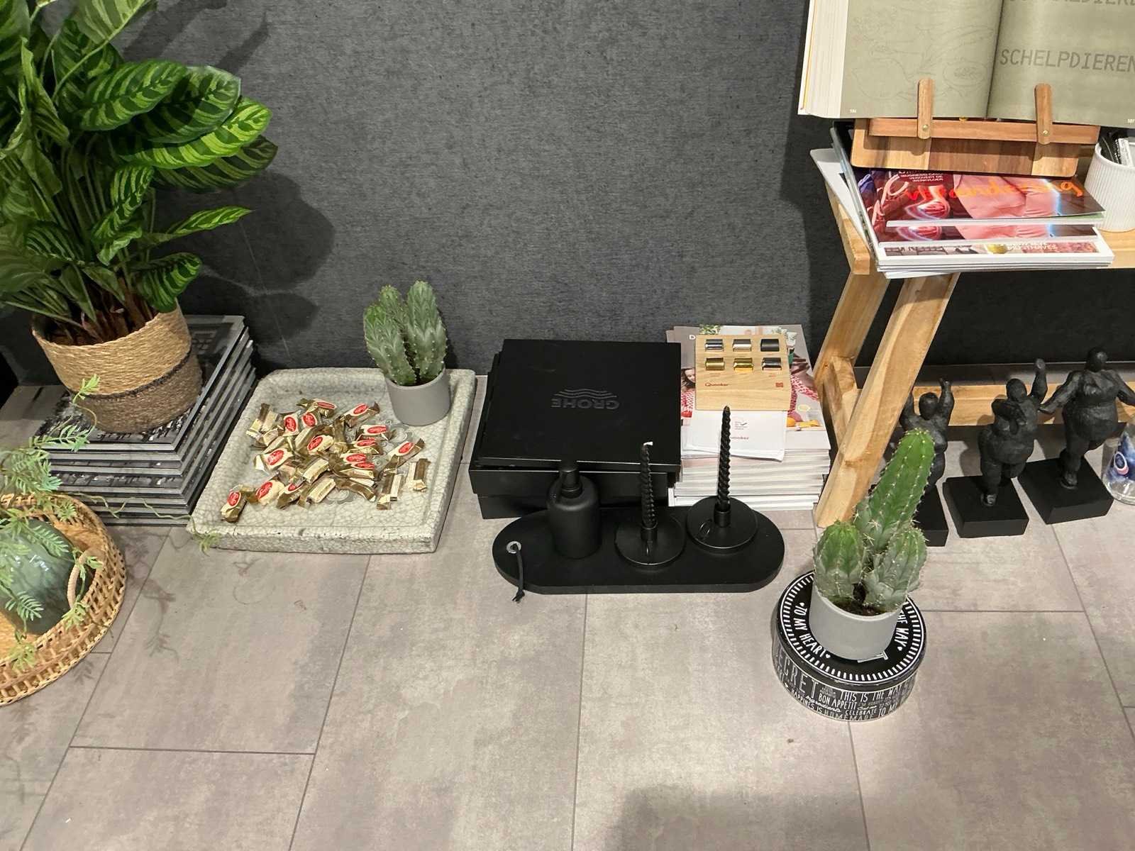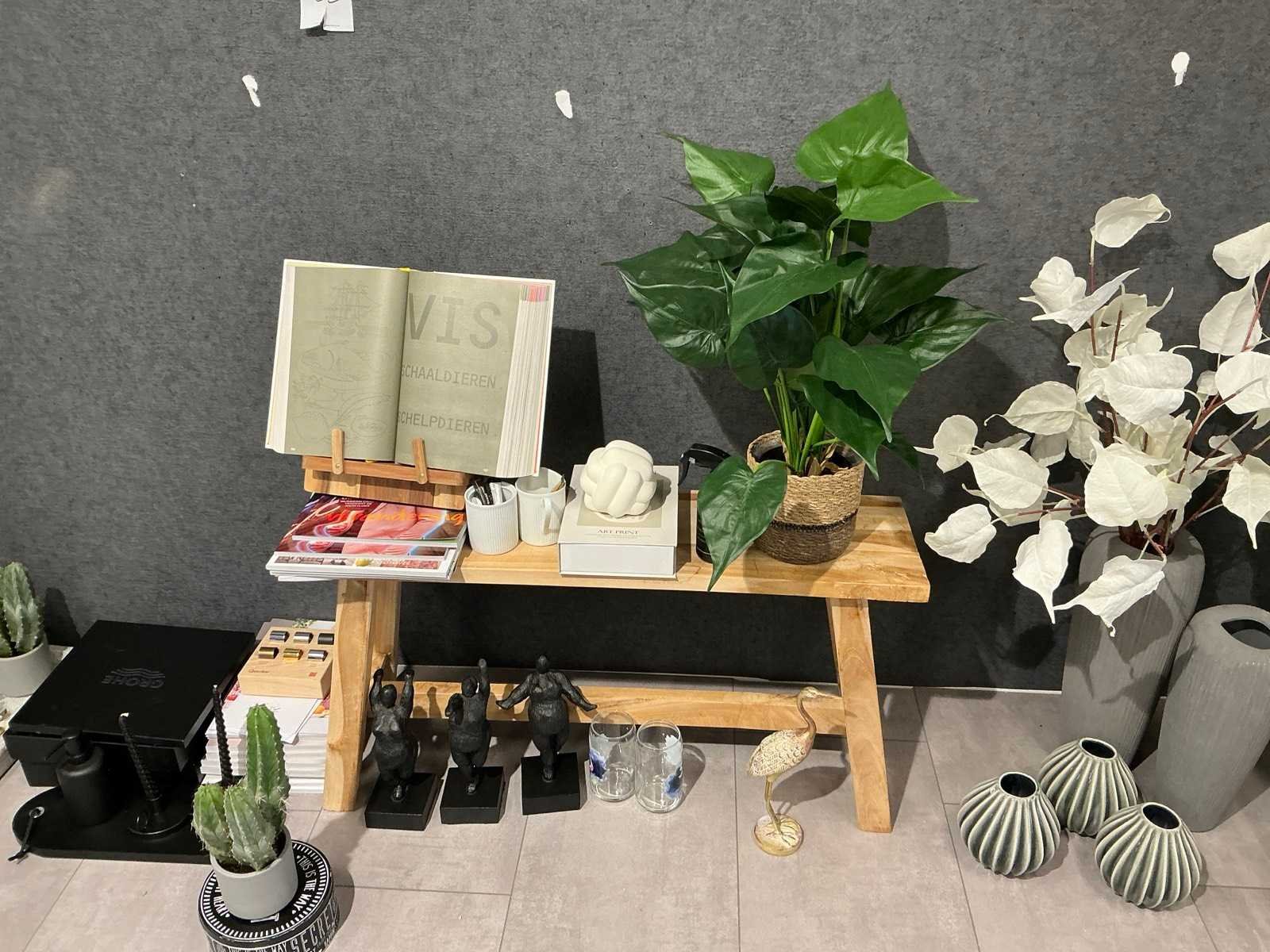 Verschillende soorten en maten waaronder kunstplanten, krukje, lectuur, vazen en theedozen.