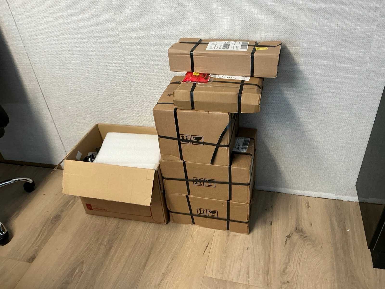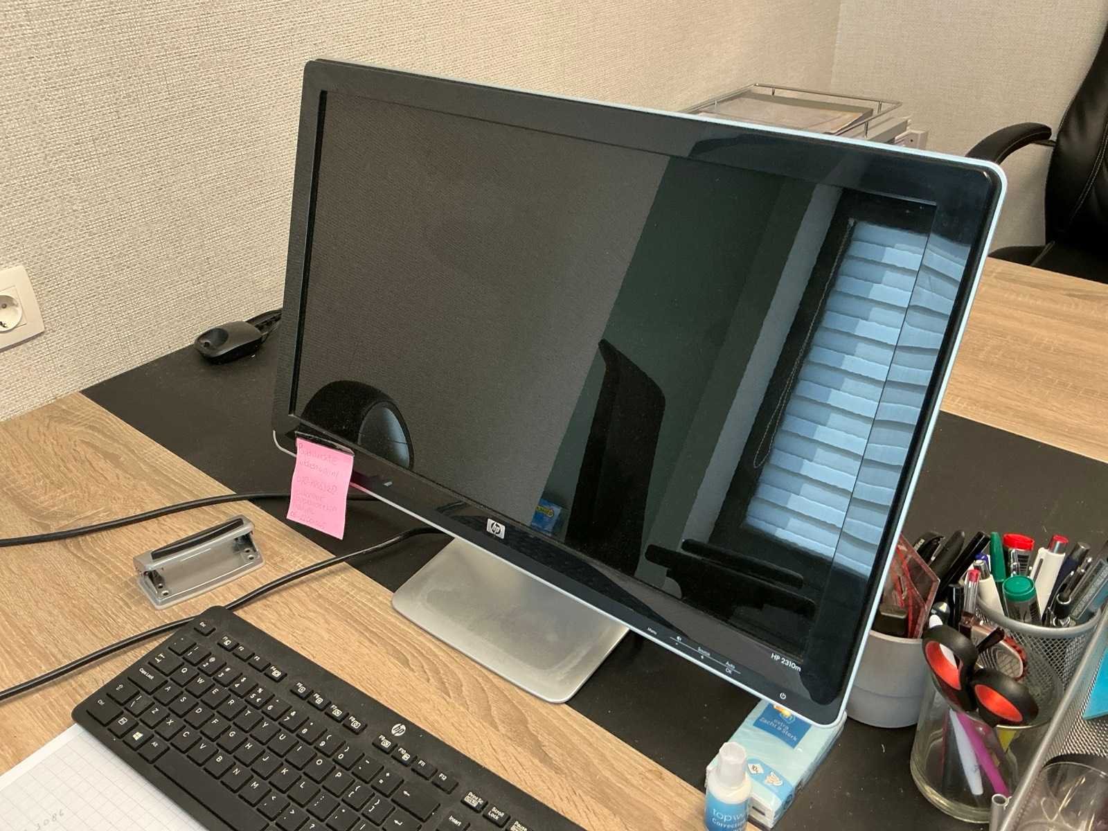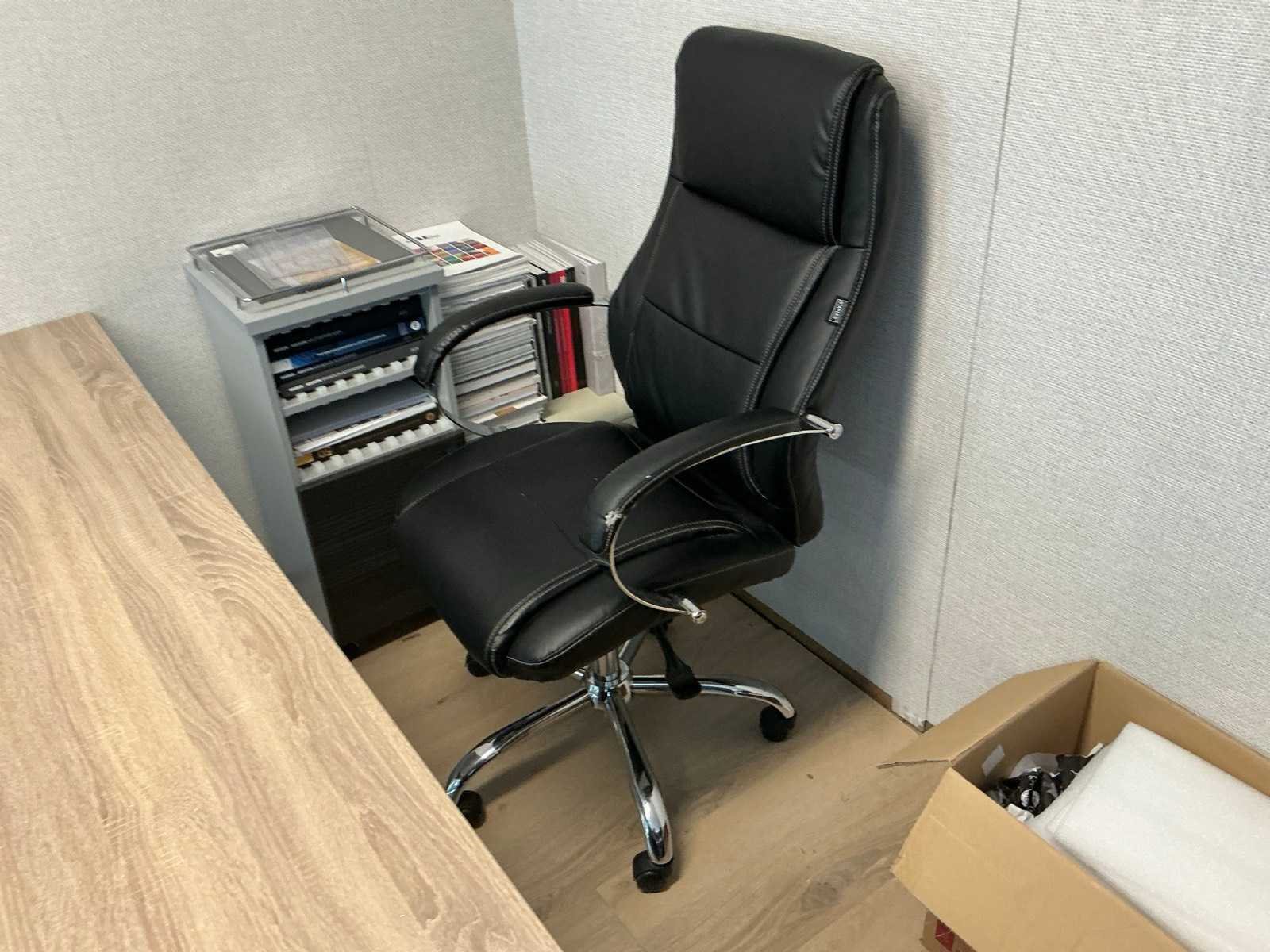 Bestaande uit een duowerkplek met 2 bureaustoelen, 2 verrijdbare kastjes, HP 2310m beeldscherm. Zonder de wandkast met inhoud.