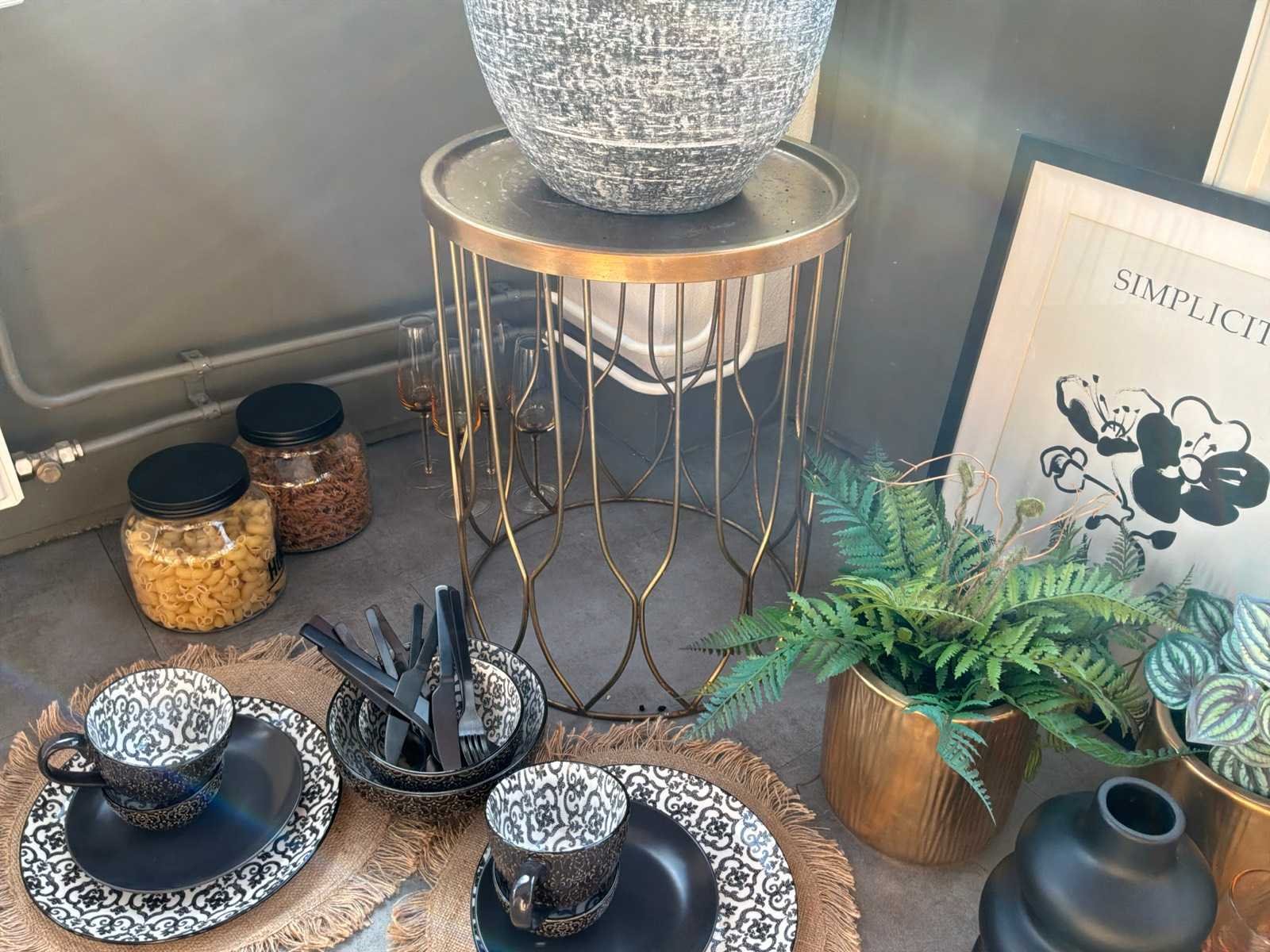 Verschillende soorten en maten waaronder kunstplanten, serviesgoed, wanddecoratie en plant in pot.