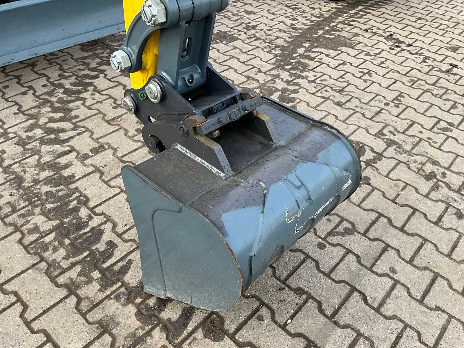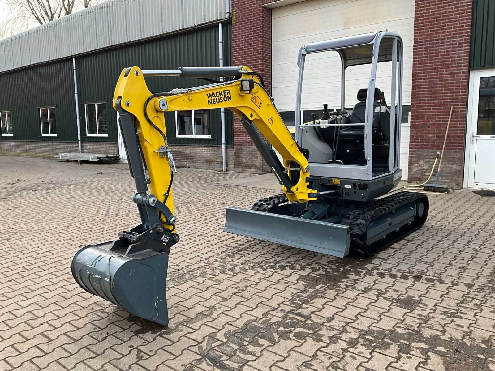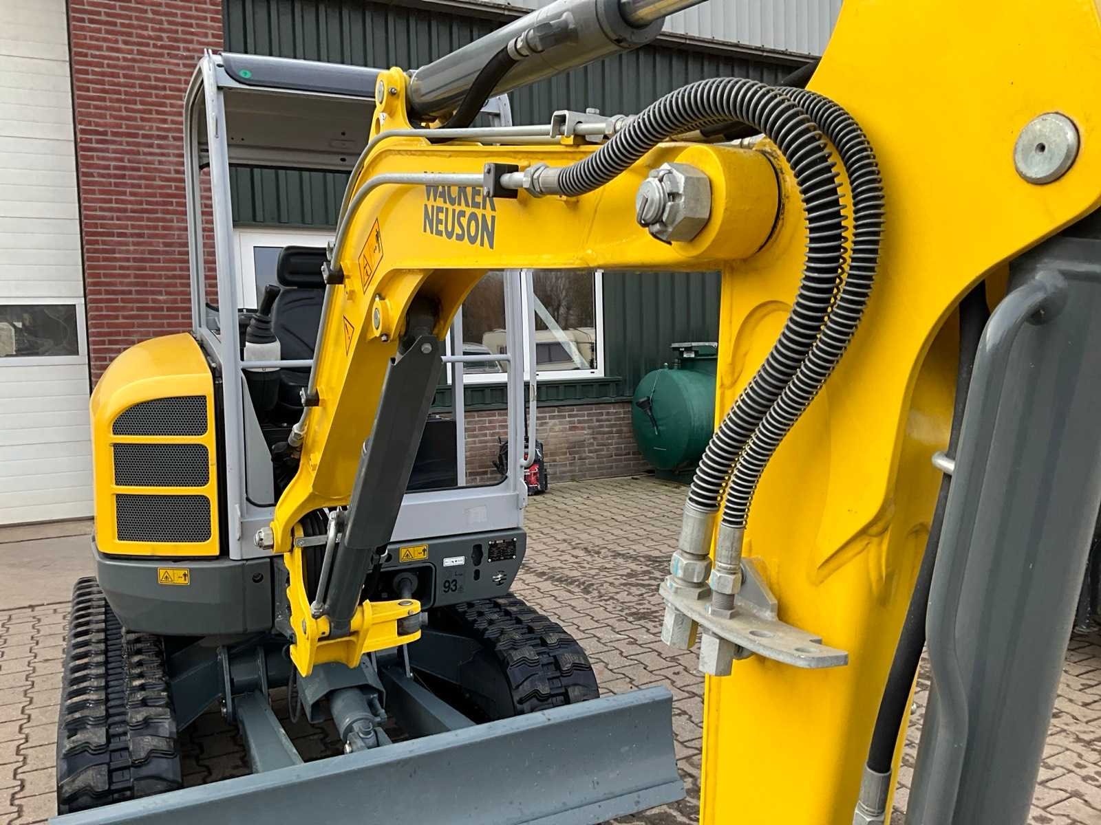 Binnendraaier, voorzien van dozerblad, hydraulische “Vematec” CW05 snelwissel met bak, verstekgiek, extra functie, cab (rolkooi), Merk: Wacker Neuson Type: EZ28 Bouwjaar: 2018 Serienummer: WNCE1002PPAL02857 Motorvermogen (kW): 15.8kW Aantal cilinders: 3 Brandstof: Diesel Bedrijfsgewicht: 2735kg Gieklengte: 3000mm Inclusief graafbak: Yes Graafbak afm. b: 550mm Rups breedte: 310mm Afgelezen urenstand: 20 Totale afmeting L: 4200mm Totale afmeting Breedte: 1600mm Totale afmeting Hoogte: 2400mm