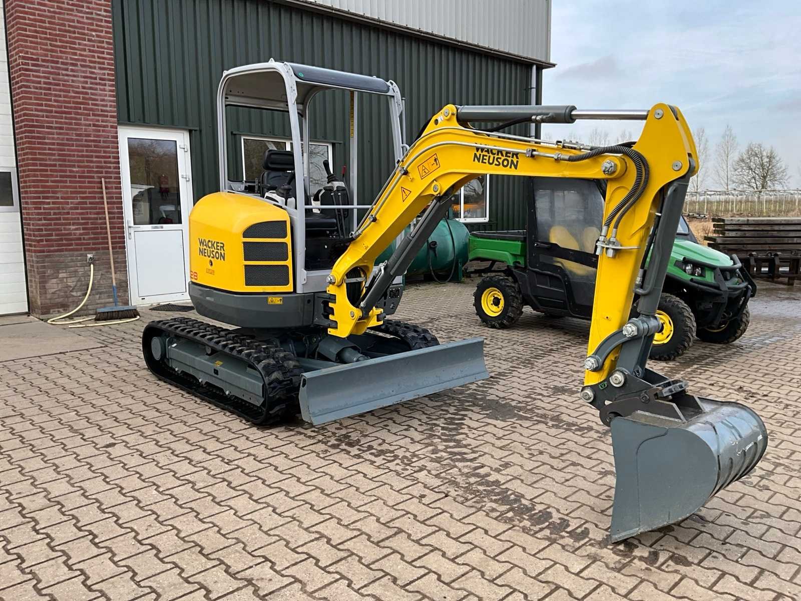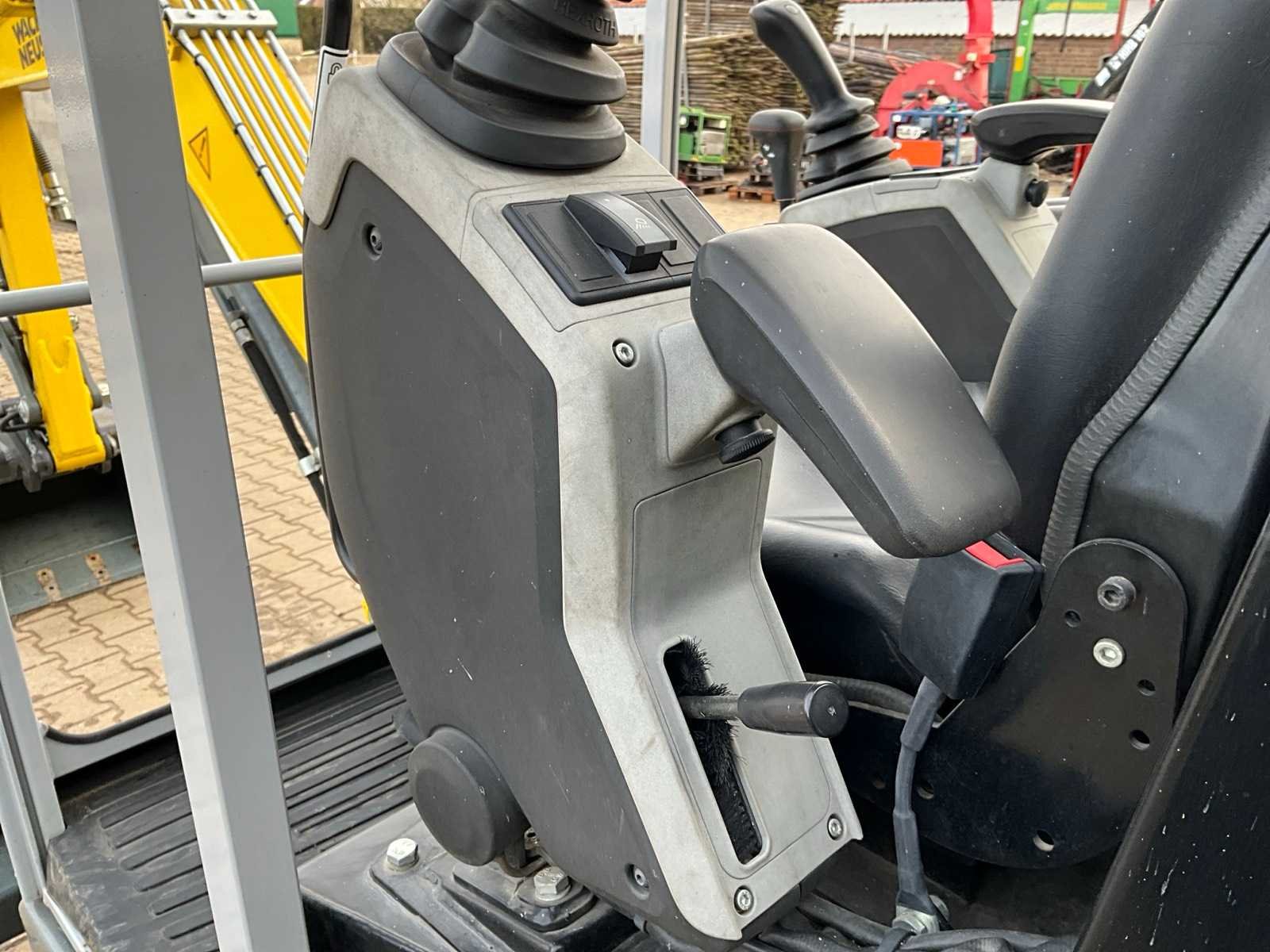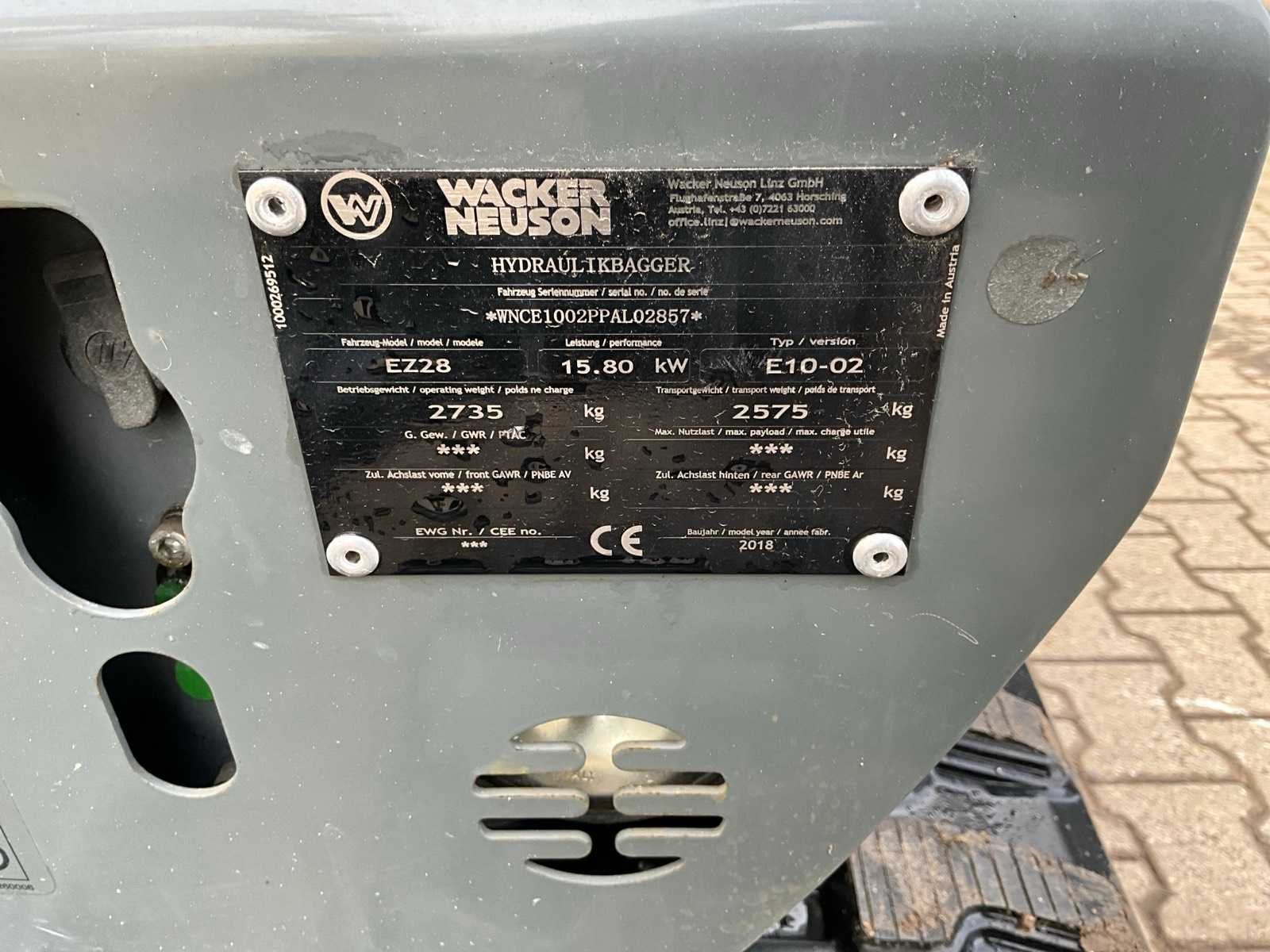 Binnendraaier, voorzien van dozerblad, hydraulische “Vematec” CW05 snelwissel met bak, verstekgiek, extra functie, cab (rolkooi), Merk: Wacker Neuson Type: EZ28 Bouwjaar: 2018 Serienummer: WNCE1002PPAL02857 Motorvermogen (kW): 15.8kW Aantal cilinders: 3 Brandstof: Diesel Bedrijfsgewicht: 2735kg Gieklengte: 3000mm Inclusief graafbak: Yes Graafbak afm. b: 550mm Rups breedte: 310mm Afgelezen urenstand: 20 Totale afmeting L: 4200mm Totale afmeting Breedte: 1600mm Totale afmeting Hoogte: 2400mm