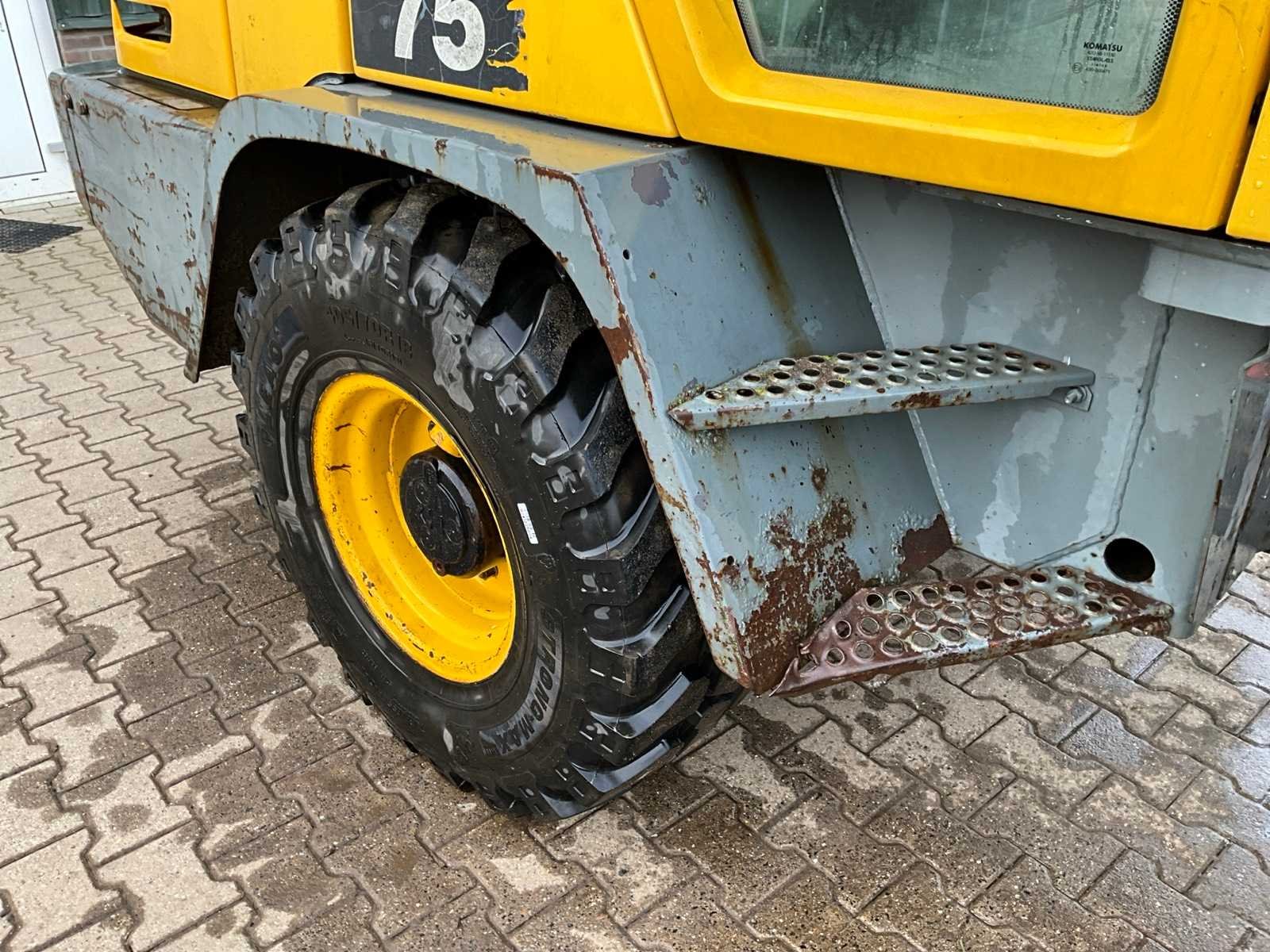 Voorzien van dichte bak, hydrostaat aandrijving, hydraulische snelwissel, Let op! urenstand niet afleesbaar Merk: Komatsu Type: WA75-3 Bouwjaar: 2003 Serienummer: HA951179 Merk motor: Yanmar Kenteken: TZD-59-X Motorvermogen (kW): 42.5kW Aantal cilinders: 4 Brandstof: diesel Graafbak afm. b: 2150mm Bandenmaat: 405/70R18 Cabine: true Totale afmeting L: 6000mm Totale afmeting Hoogte: 2700mm