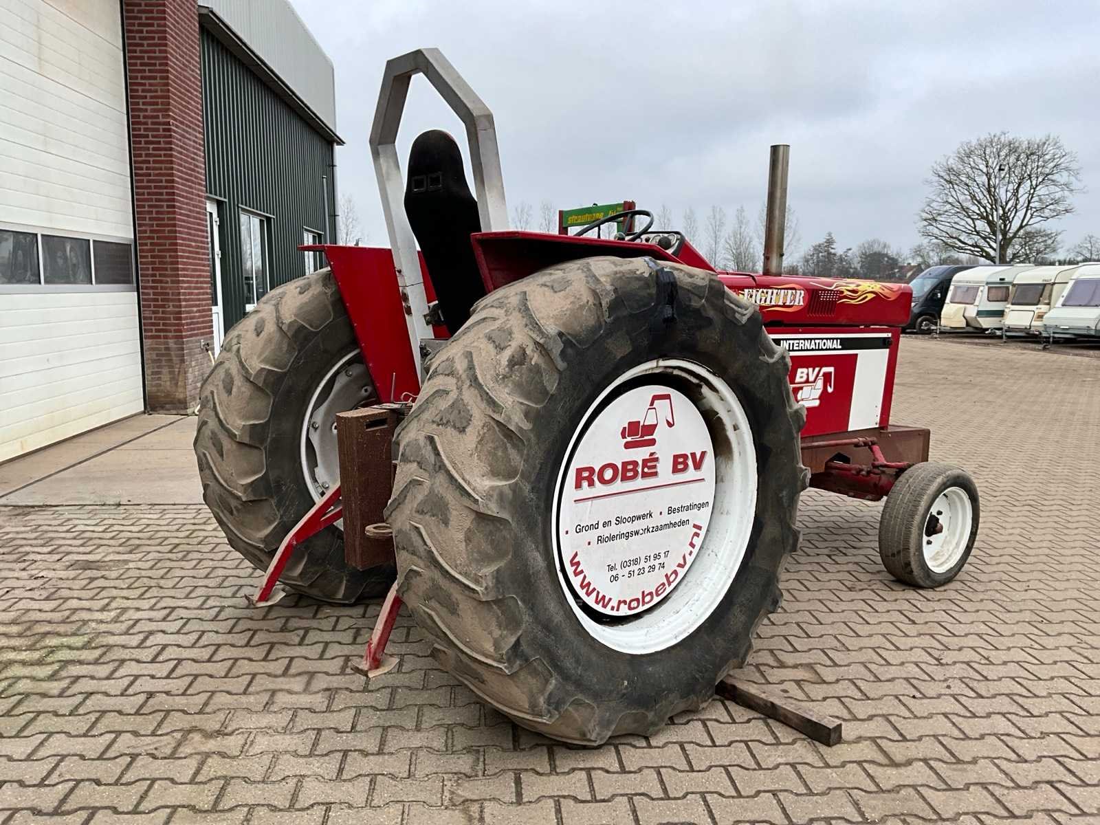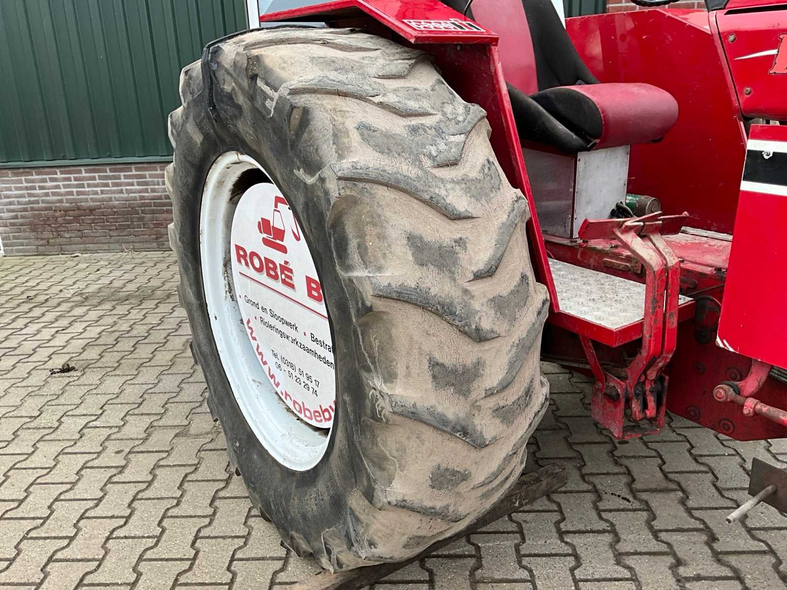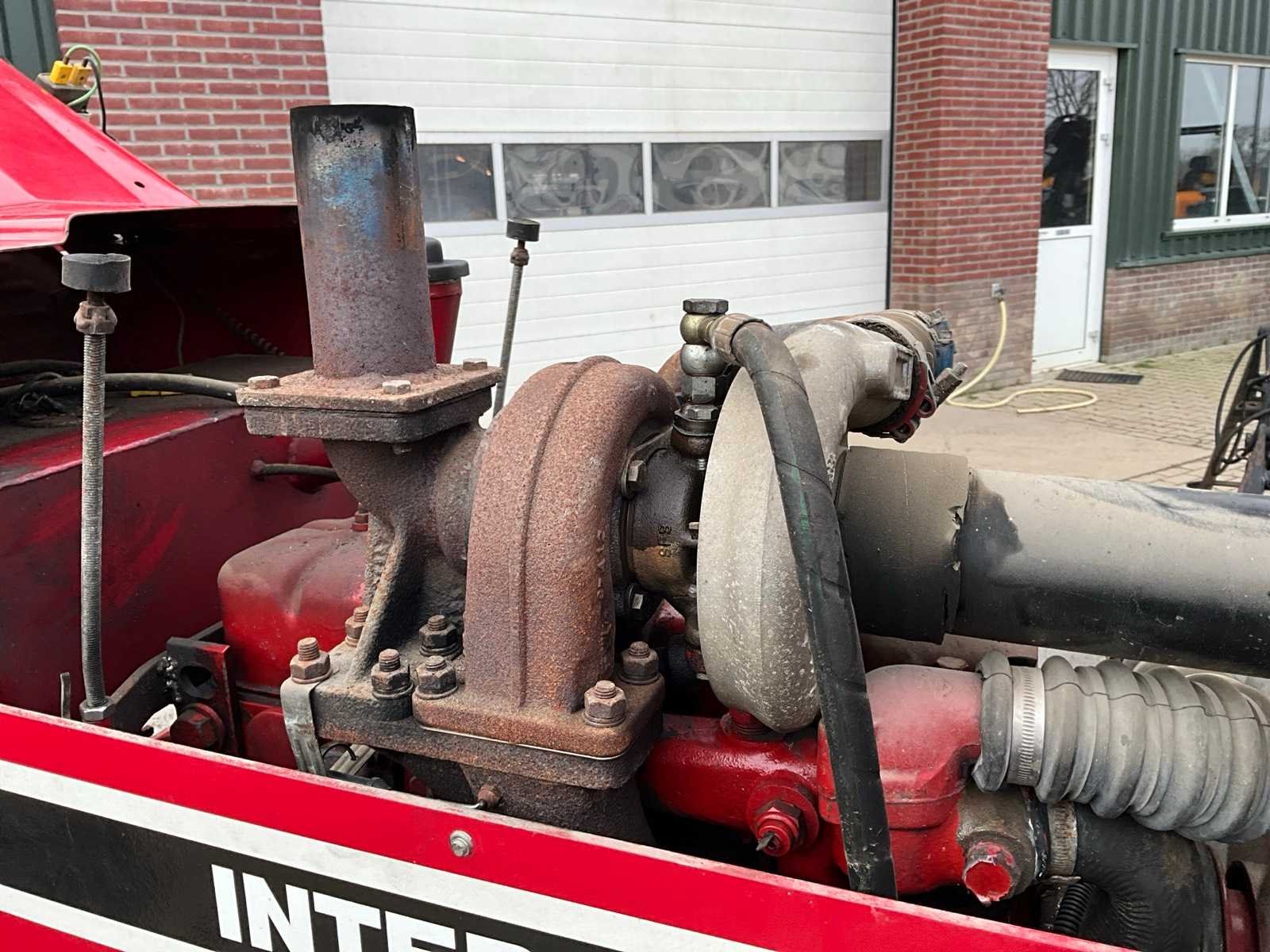 Voorzien van steiger begrenzer, afneembare contrgewichten, rolbeugel, verstelbare trekhaak, Merk: International Type: 645F Bouwjaar: 1972 Serienummer: D030158F001550 Versnellingsbaktype: handgeschakeld Bandenmaat achter: 18.4R34