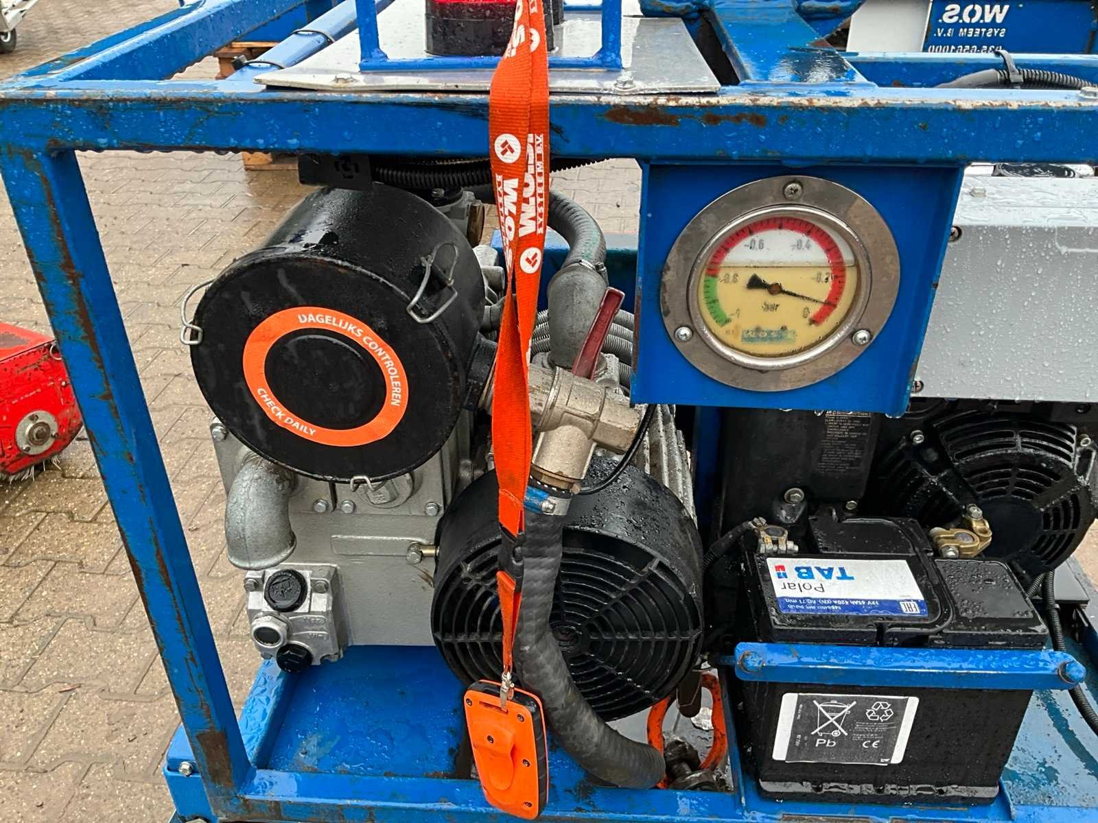 Vacuüm plateau afmeting 760x760 mm, voorzien van benzinemotor, elektrische start, radiografische afstandsbediening, vacuümpomp Merk: W.O.S. Type: 0100BE Hijsvermogen: 1500kg Totale afmeting Hoogte: 1100mm