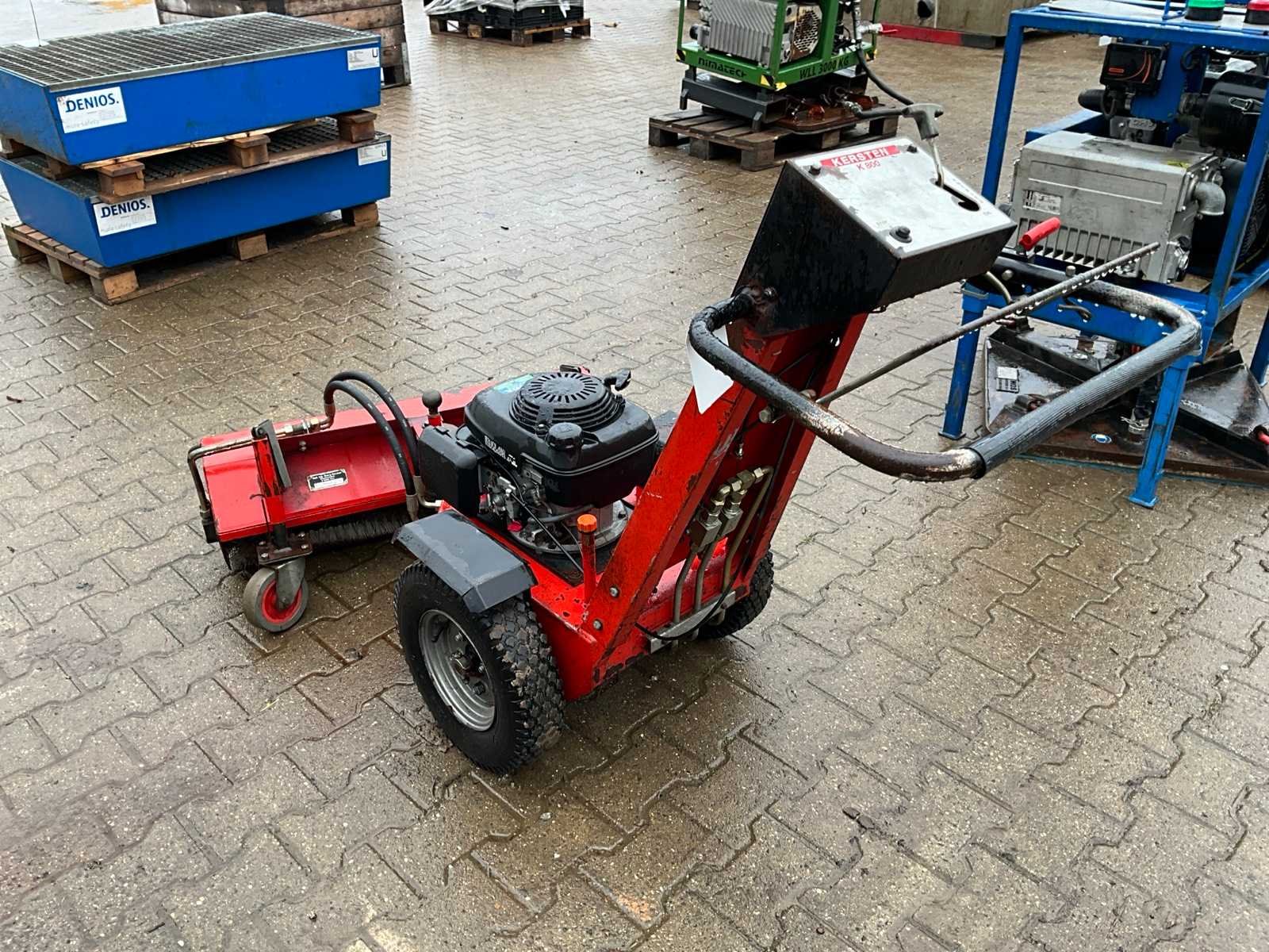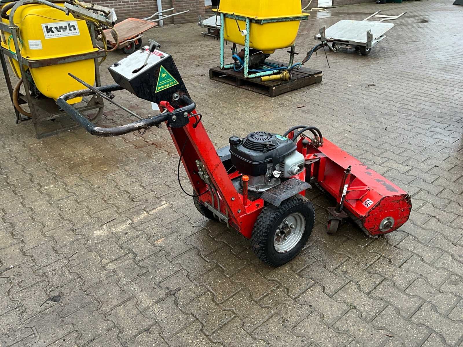 Voorzien van benzinemotor, scheefstelling, hydraulische aangedreven bezem, loopwielen, wiel aandrijving Merk: Kersten Type: K800 Werkbreedte: 900mm Benzinemotor: true