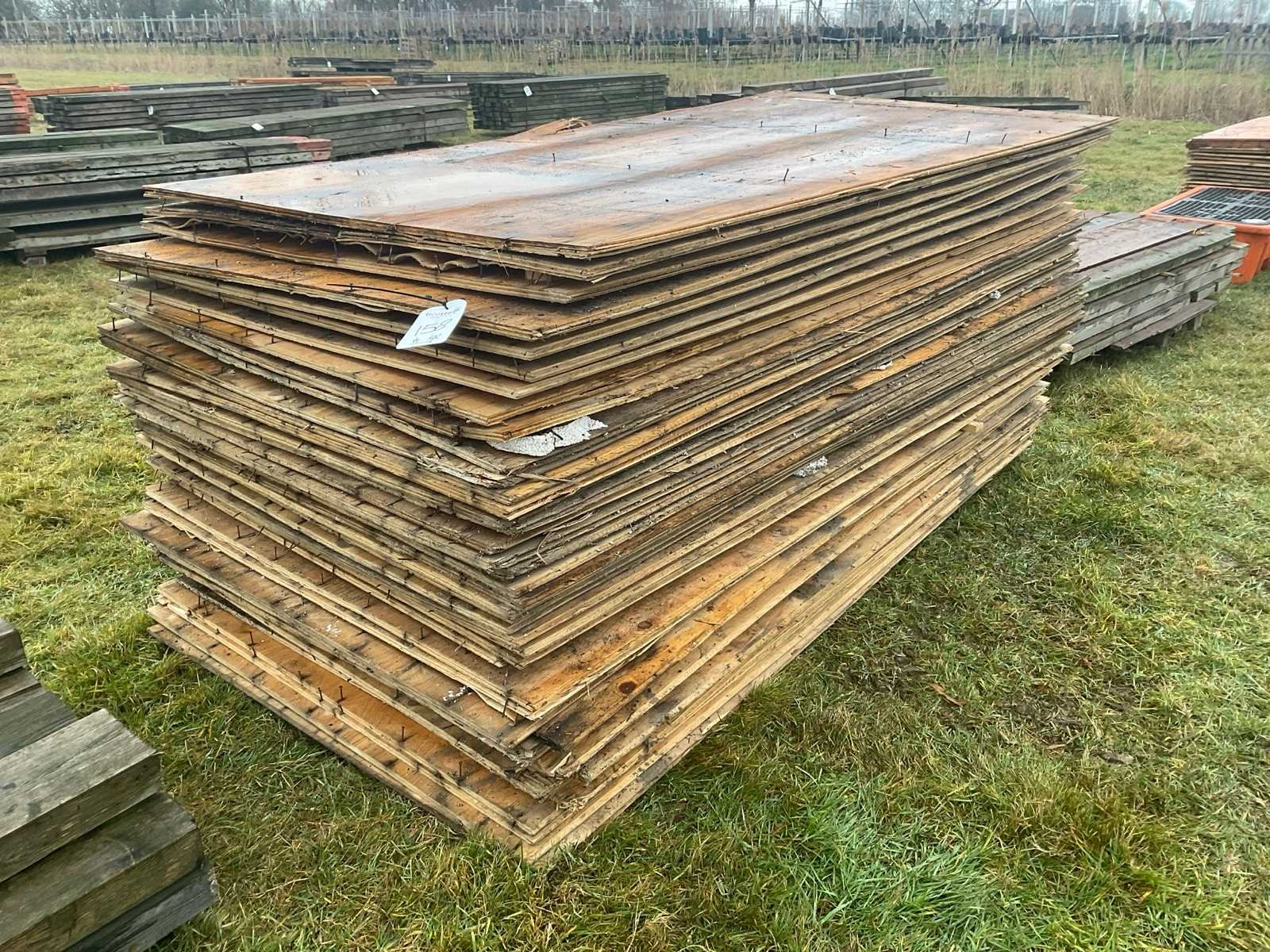 Dikte 18mm, gebruikt 41x zonder spijkers, 87x met spijkers Lengte: 2440mm Breedte: 1220mm Materiaal: Multiplex