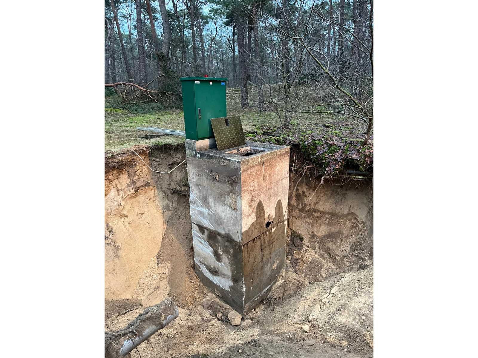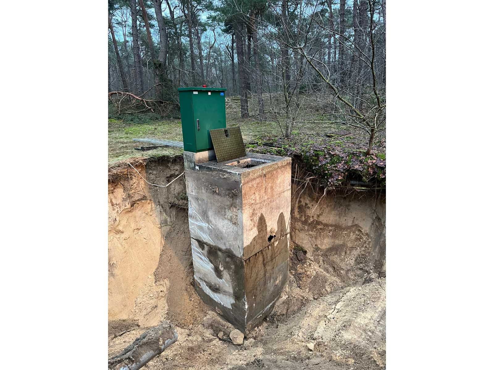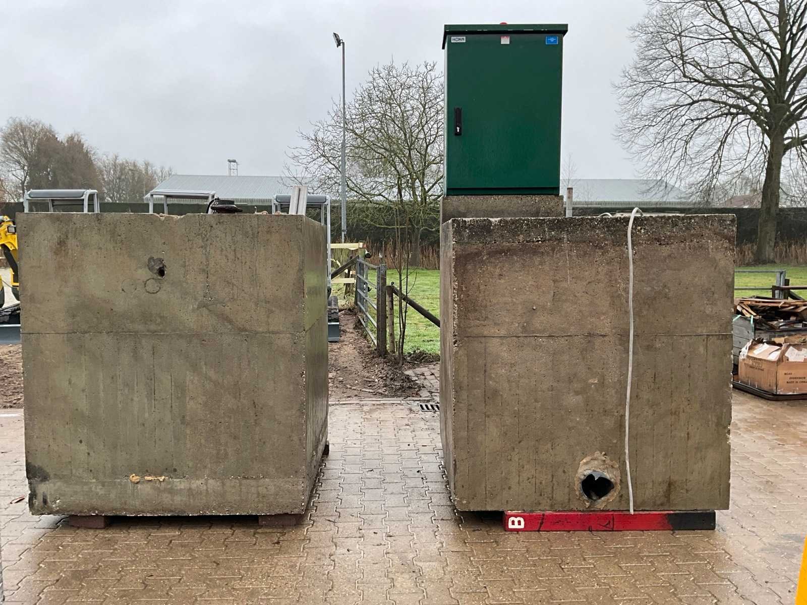 1x put met pomp unit, 1x put met regelkast en vlotters, 1x 1500x1500x1700 mm, 1x 1500x1800x3000 mm