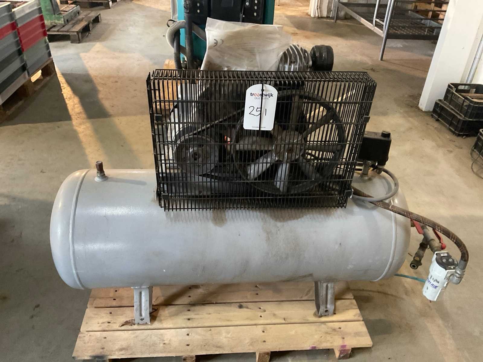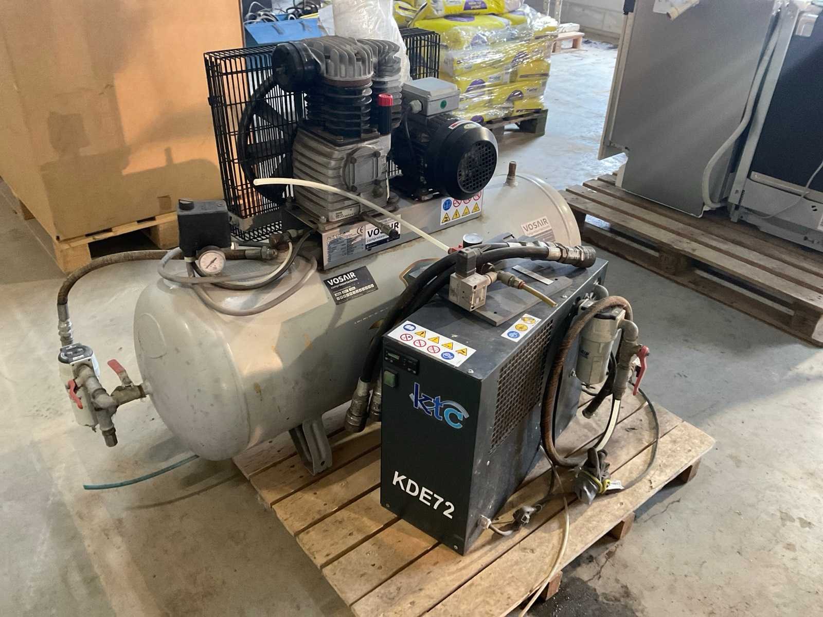 Inclusief KTC type KDE72 luchtdroger Merk: Dutch Air Type: K17/150/350/PF/M Bouwjaar: 2013 Serienummer: 105763 Capaciteit.: 10bar Luchtstroom: 350l/min Vermogen: 2.2kW Buffertank inhoud: 150l Luchtdroger: true Aansluiting: 230V Totale afmeting L: 1350mm Totale afmeting Breedte: 800mm Totale afmeting Hoogte: 900mm