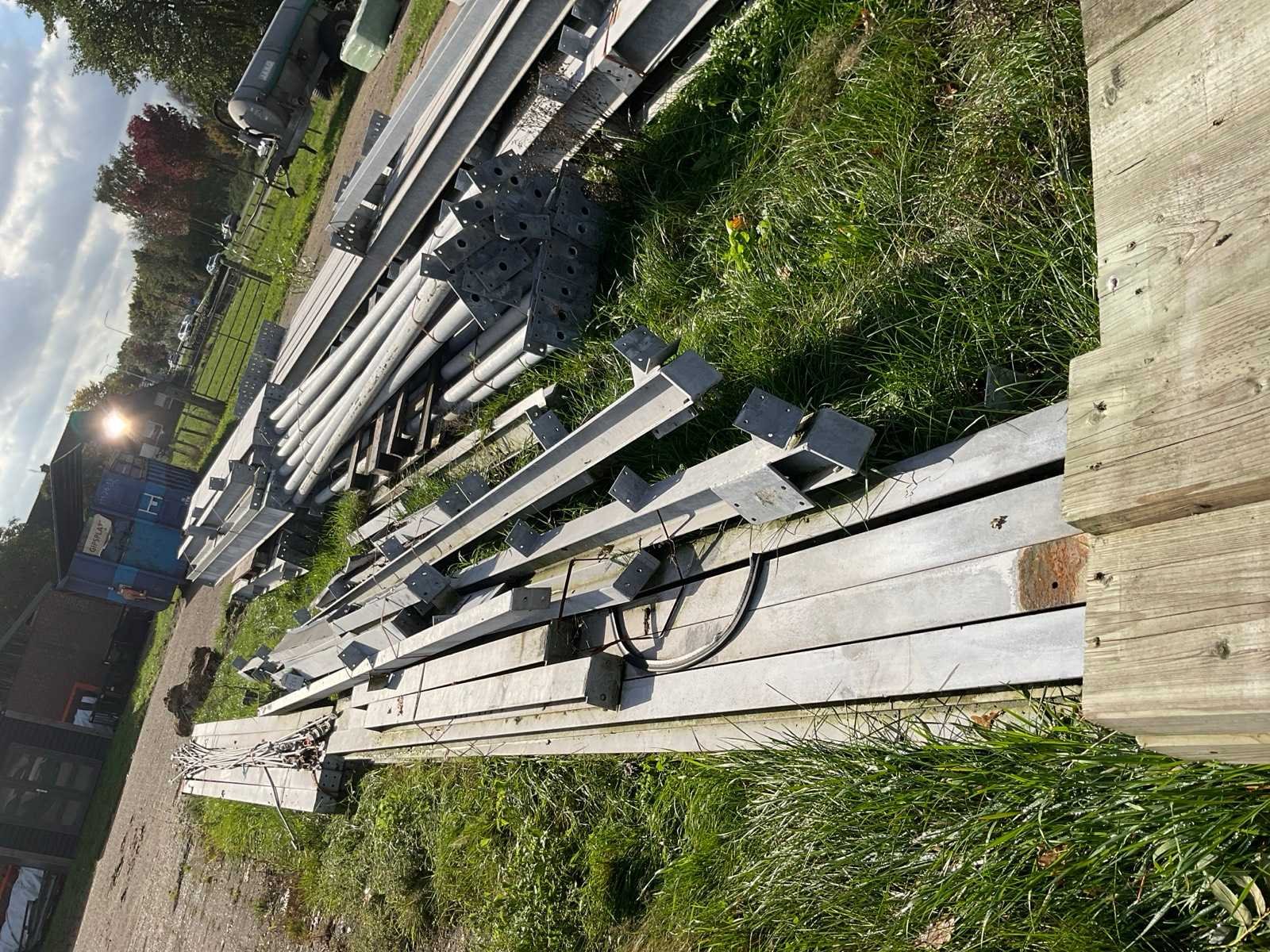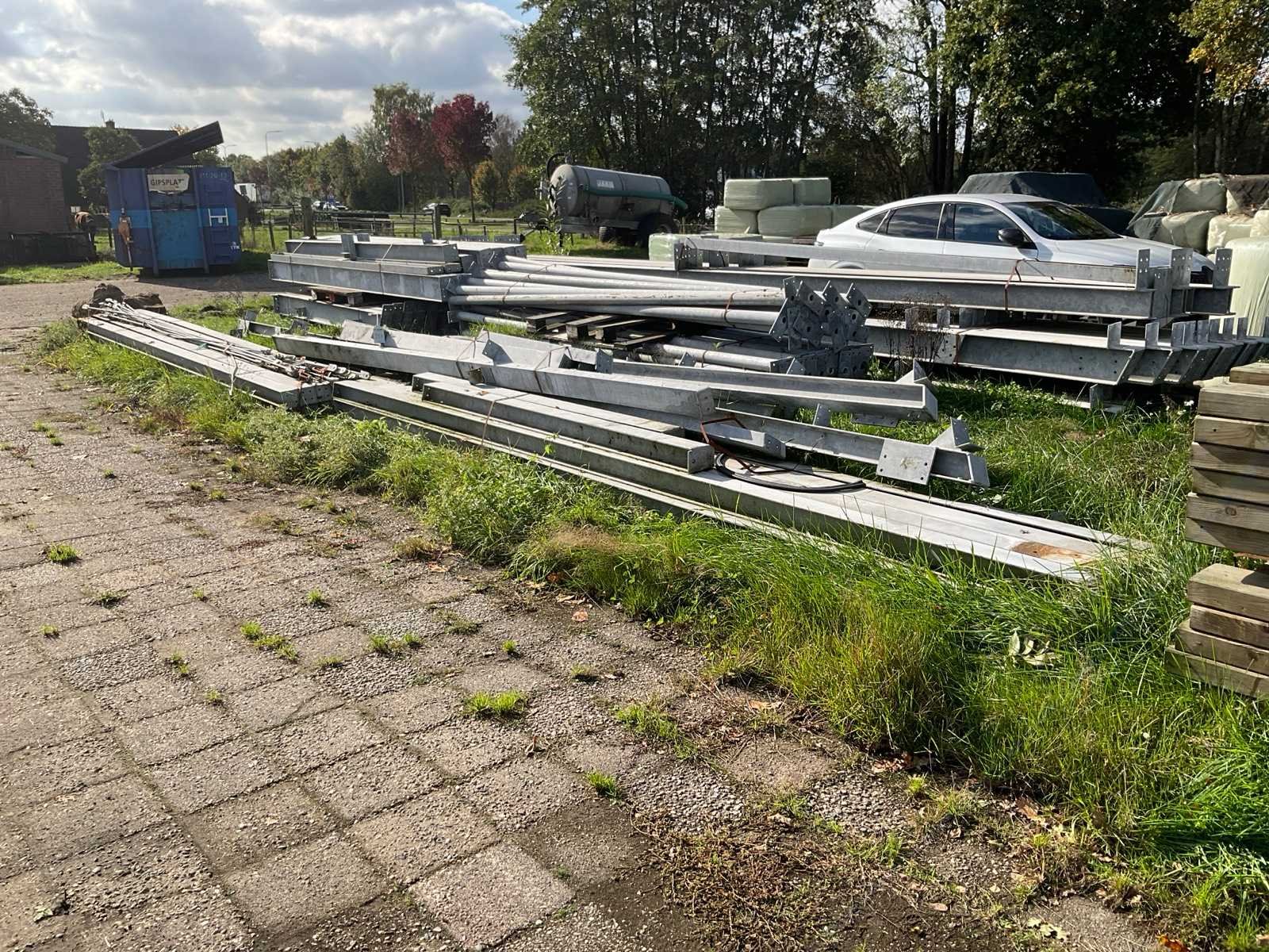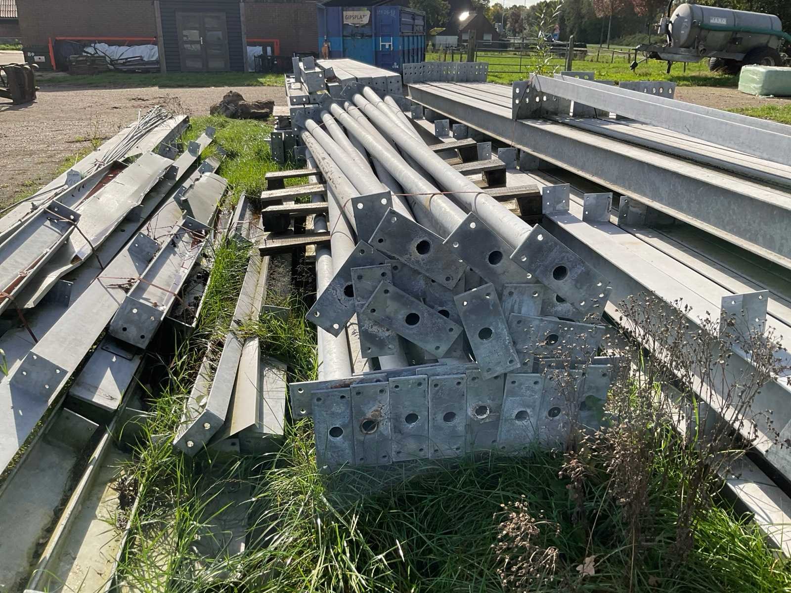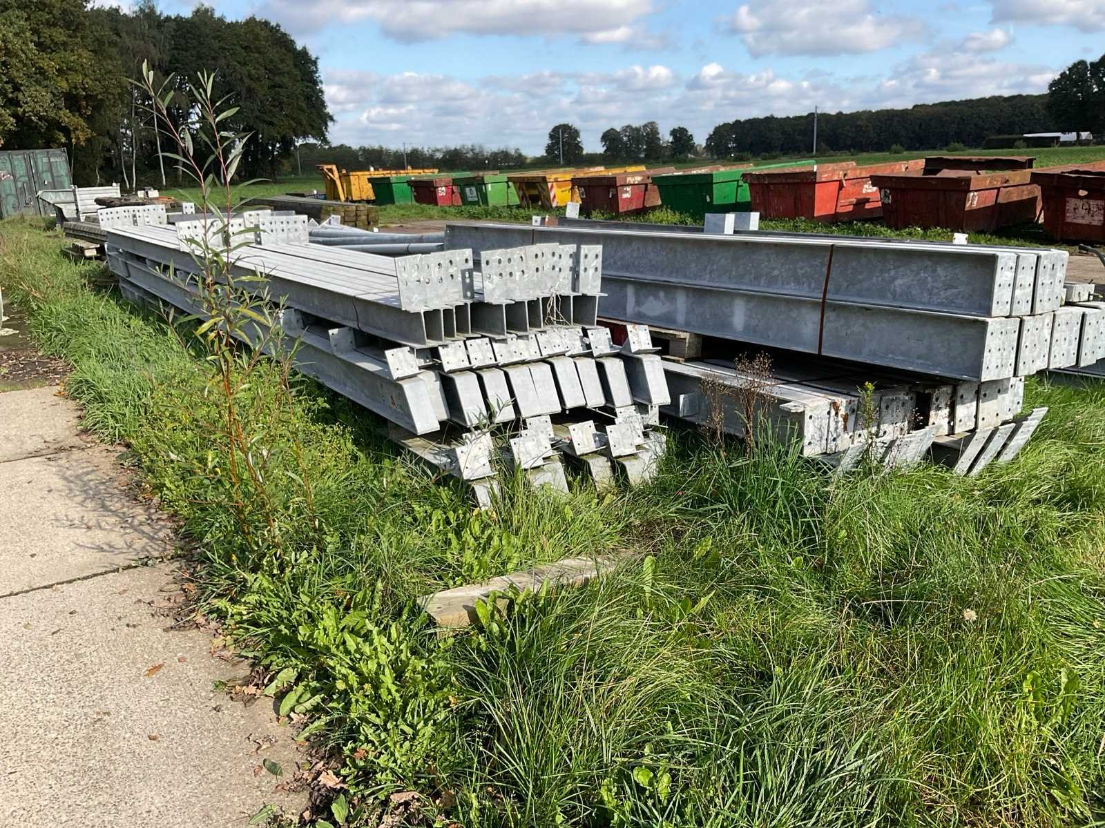 Met IPE 220x110 hoofdbalken, gegalvaniseerd, laad afmeting circa 9000x2400x2200mm. Loods afmeting 44,12x15,12x6,2 meter (LxBxH) Materiaal: Metaal gegalvaniseerd Totaal oppervlakte: 660m² Goot hoogte: 3000mm Nok hoogte: 6200mm Totale afmeting L: 44120mm Totale afmeting Breedte: 15120mm Totale afmeting Hoogte: 6200mm