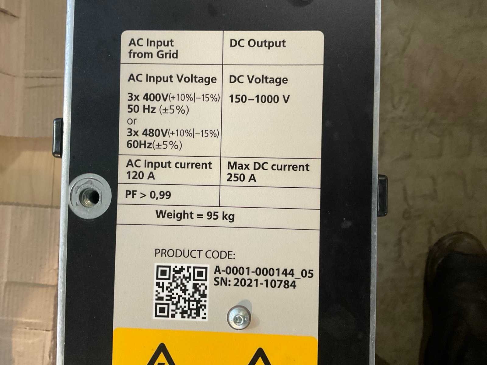 Input: 3x 400V, DC 150-1000V Merk: Hypercharger Product type: Power Stack Gewicht: 95kg Lengte: 150cm Breedte: 15cm Hoogte: 50cm