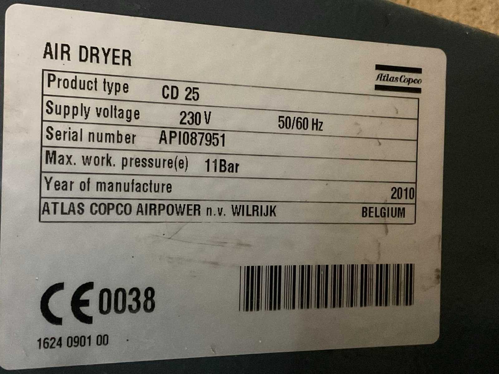 Maximaal 11 bar Merk: Atlas Copo Type: CD25 Bouwjaar: 2010 Serienummer: API087951 Aansluiting: 230V Totale afmeting L: 1150mm Totale afmeting Breedte: 750mm Totale afmeting Hoogte: 175mm