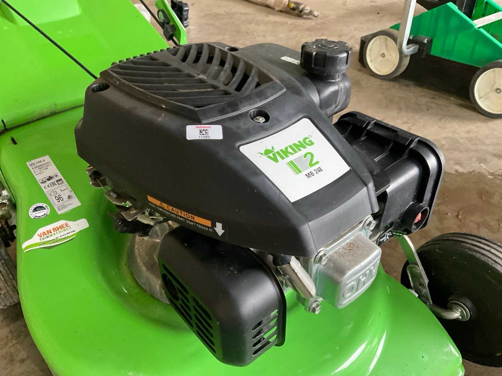 Merk: Viking Type: MB248.4 Serienummer: 436982531 Werkbreedte: 40cm Zelfrijdend: true Loopmaaier: true Benzinemotor: true Opvang container: true Totale afmeting L: 140cm Totale afmeting Breedte: 55cm Totale afmeting Hoogte: 105cm