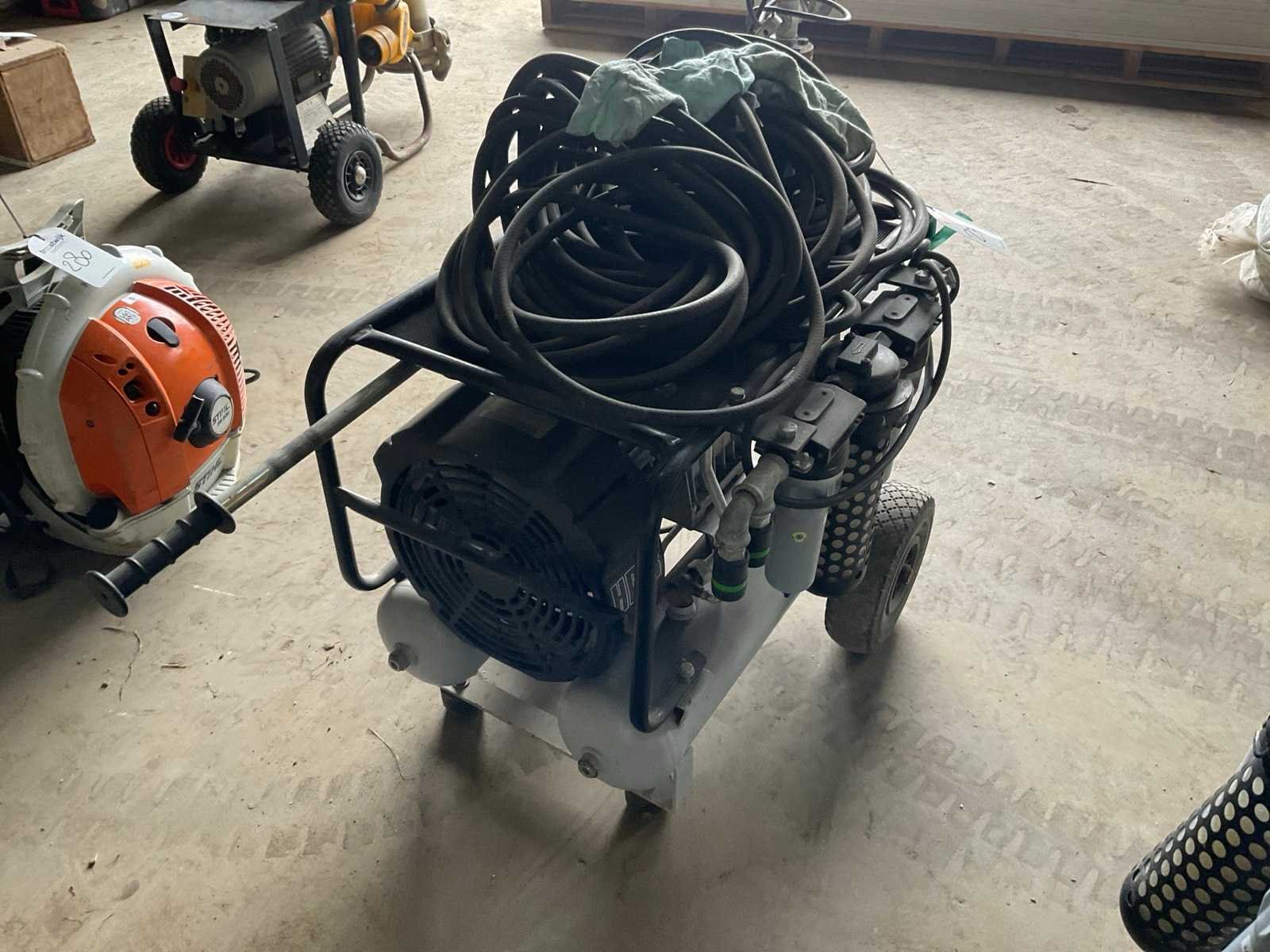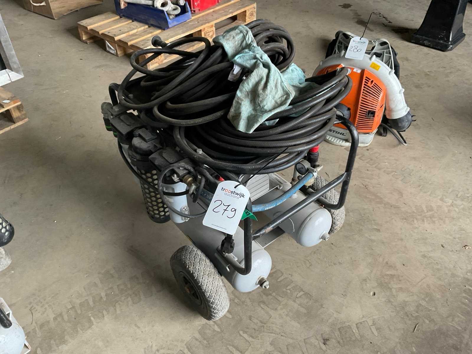 Inclusief slangen Merk: Aariac Type: Mobiel 340/22H Bouwjaar: 2016 Serienummer: ITR10058962 Mobiel: true Capaciteit.: 10bar Vermogen: 2.2kW Aansluiting: 230V Eigen gewicht: 59kg Totale afmeting L: 850mm Totale afmeting Breedte: 570mm Totale afmeting Hoogte: 600mm