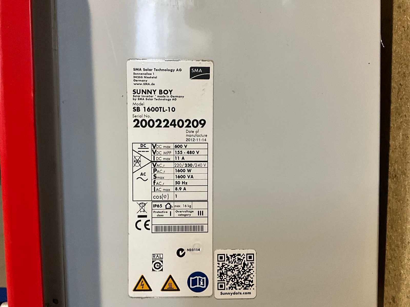 Sunny boy sb 1600tl-10 omvormer