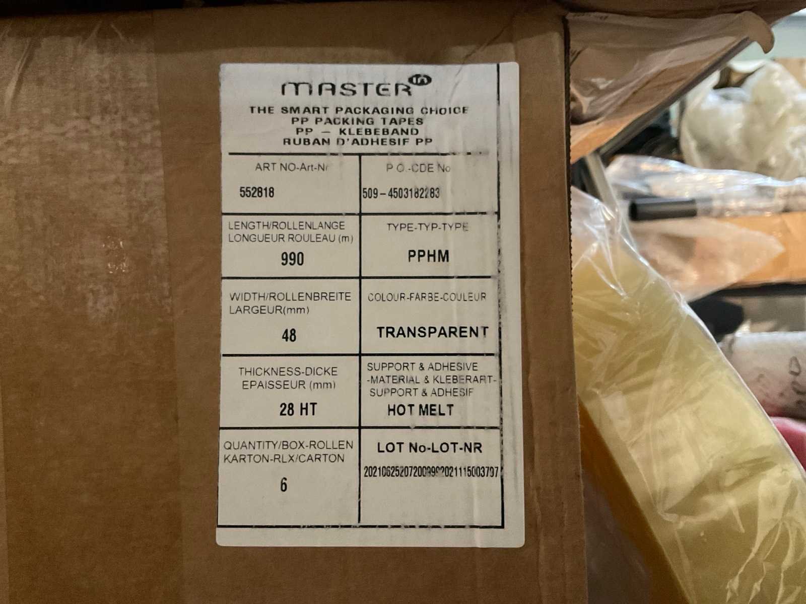 L per rol 990m, B 48mm Merk: Master Materiaal: Hot melt