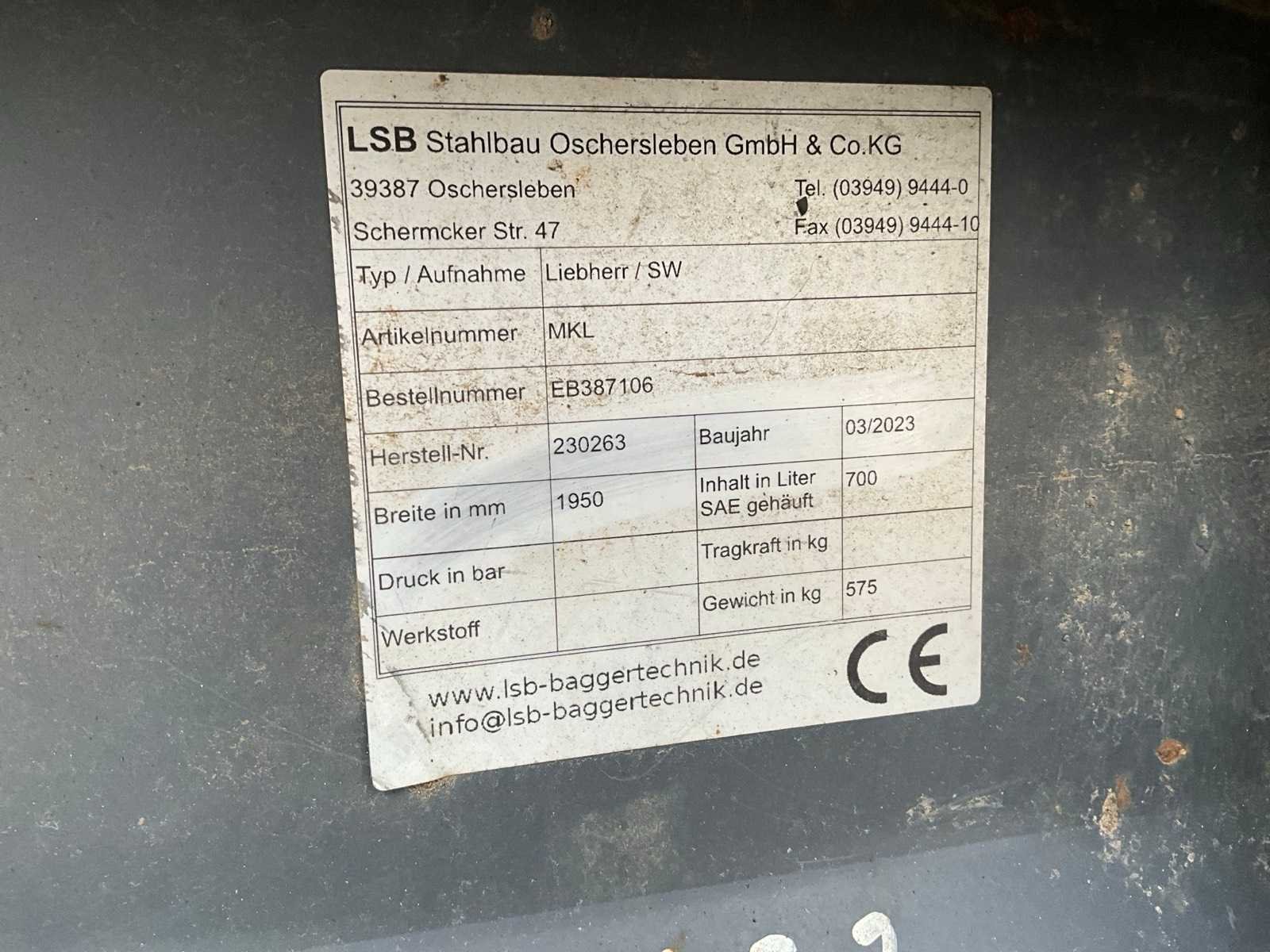 Liebherr adapter, 700 Ltr inhoud Merk: LSB Bouwjaar: 2023 Eigen gewicht: 575kg Totale afmeting Breedte: 1950mm
