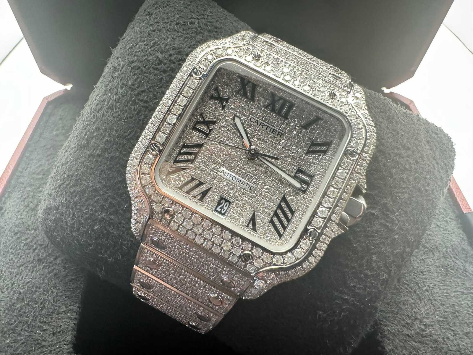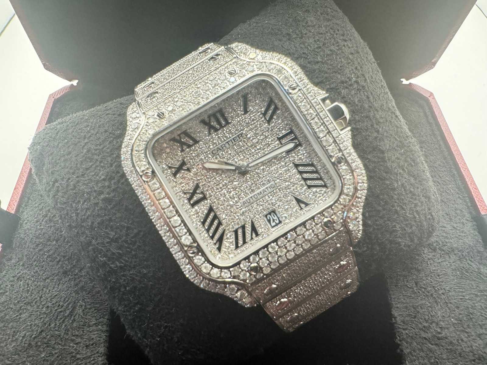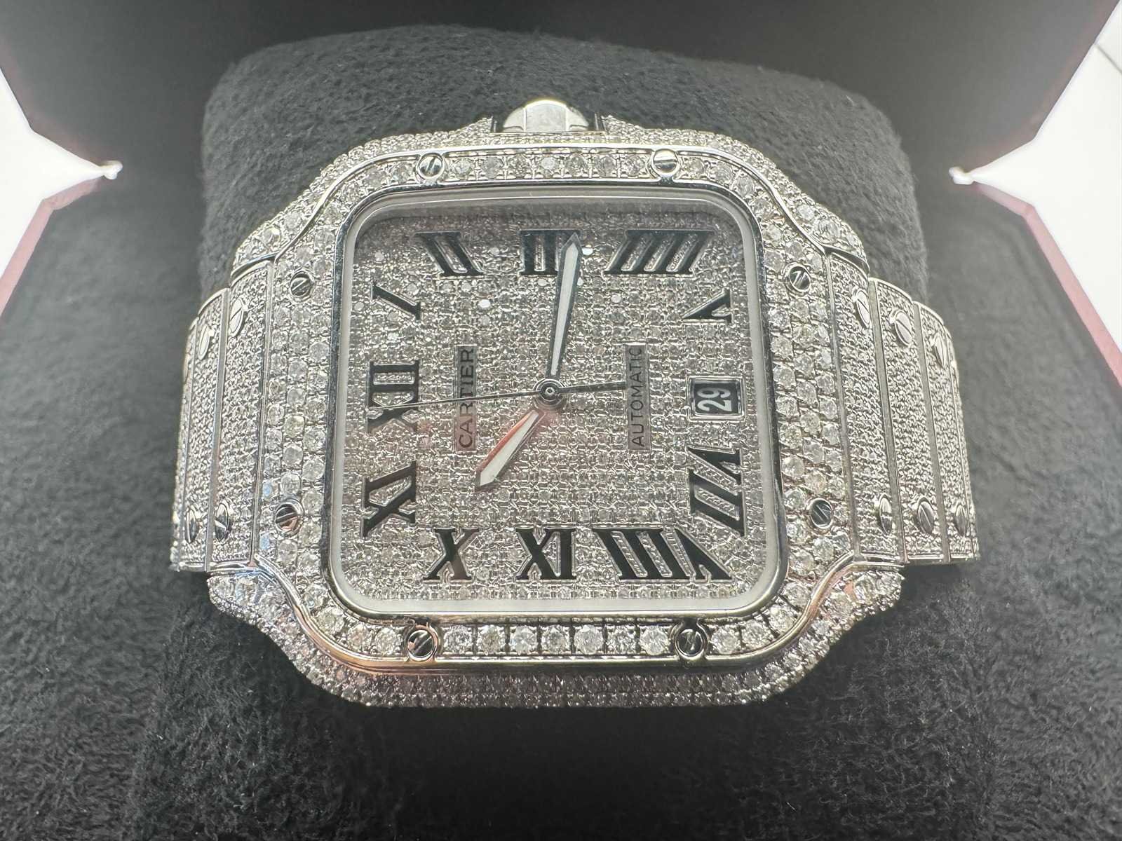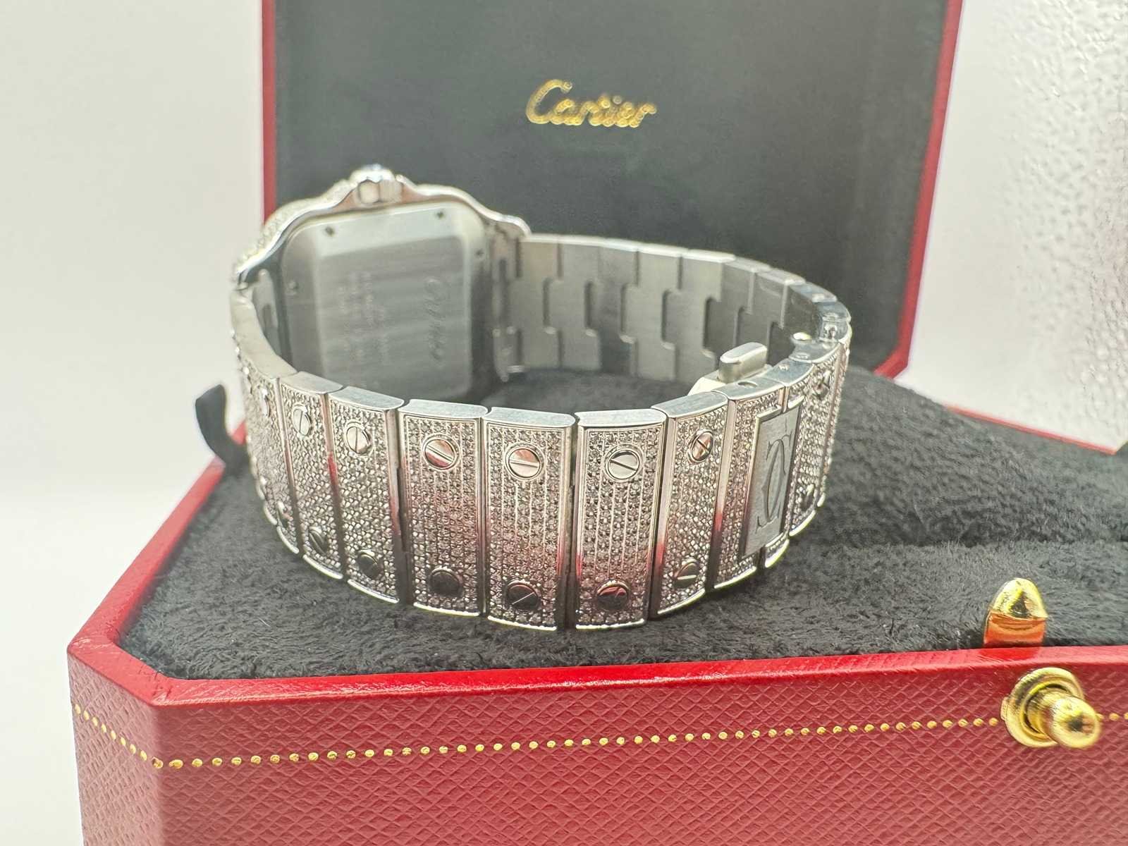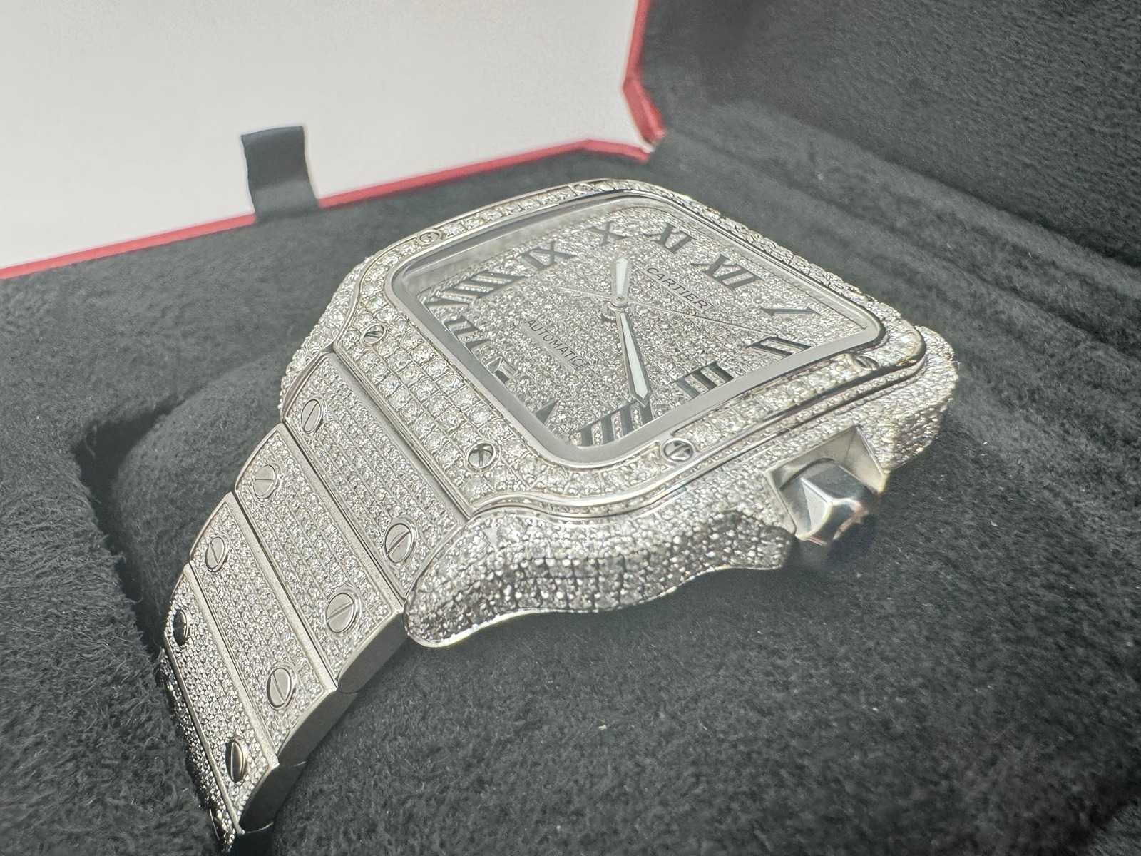 Conditie: Gloednieuw en ongedragen van 2020 • Diamantzetting: Volledig bezet met echte naturel VS diamanten, ook wel "iced out" genoemd • Complete Set: Inclusief originele Cartier doos, papieren en Cartier authenticatiepas • Referentienummer: WSSA0018 • Wijzerplaat: Iconische Cartier wijzerplaat met Romeinse cijfers volledig bezet met natural diamanten • Kast: Grote roestvrijstalen kast, perfect in harmonie met de fonkelende diamantzetting • Armband: Bijpassende roestvrijstalen armband, eveneens bezet met diamanten. Aanvullende Informatie: • Verpakking: Dit horloge wordt geleverd als een volledige set met de originele Cartier doos, officiële papieren en de Cartier authenticatiepas. Merk: Cartier Model: Santos Bouwjaar: 2020 Referentienummer: WSSA0018 Materiaal kast: Steel / Diamonds Materiaal horlogeband: Steel / Diamonds Materiaal sluiting: Steel / Diamonds Wijzerplaat: Diamonds Kastmaat: 39 mm