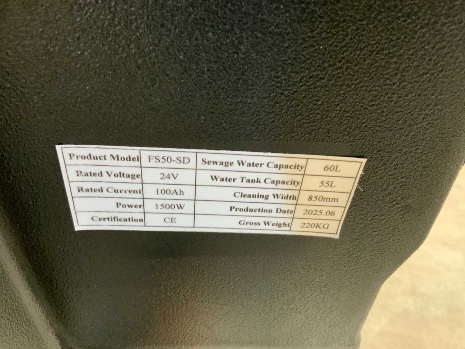 Gebruikt; probleem in aandrijving; gebruikerssporen; Disk brush 510mm; squeegee width 850mm; clear watertank 55L; Recovery 60L; work capacity 2000m/h; Voltage 24V; Battery 200Ah*2*12V; Power 1500W; self driven; batterij monitor; light; speed regulator; horn; Charger; manual; 7534 Merk: RTE Type: FS50-SD Bouwjaar: 2025 Werkbreedte: 510mm Elektrisch: true Aansluiting: 230V Accu lader: true Oplaadbaar: true Eigen gewicht: 220kg Totale afmeting L: 1400mm Totale afmeting Breedte: 850mm Totale afmeting Hoogte: 1050mm