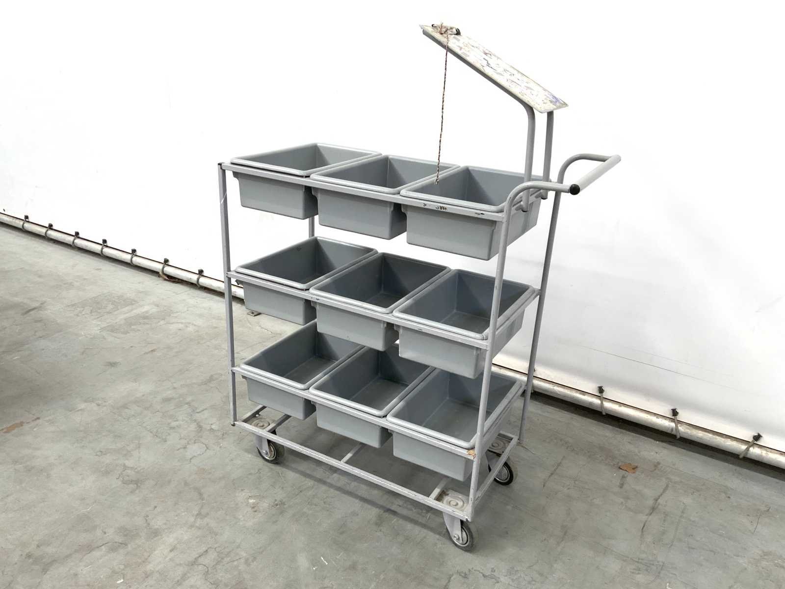 Bakken van het merk Overtoom; bak afmeting 400 x 245 x 140 mm; bakken zijn uitneembaar en stapelbaar; bak is van kunststof; kar is metaal; Totale afmeting L: 950mm Totale afmeting Breedte: 425mm Totale afmeting Hoogte: 1340mm