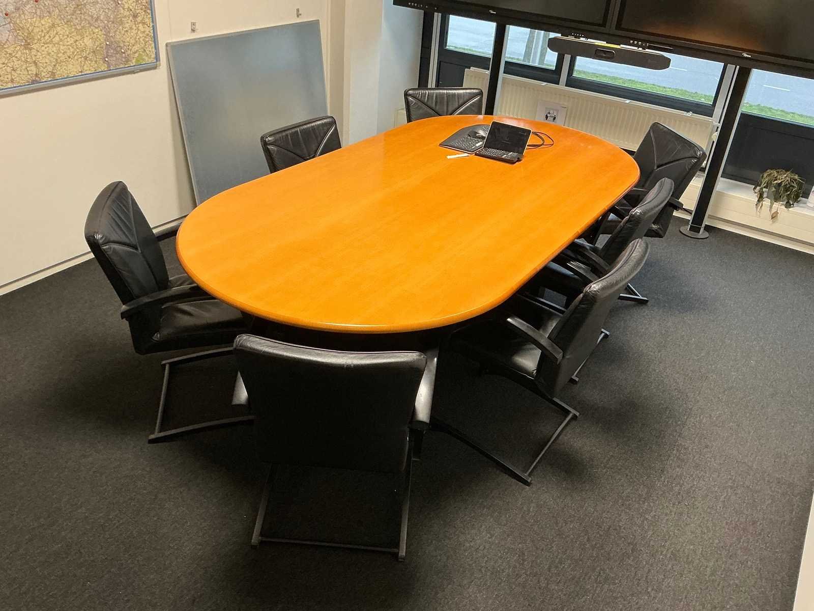 Voorzien van 7 stoelen. Apparatuur op tafel niet meegeleverd. Lengte: 240cm Breedte: 120cm Hoogte: 75cm