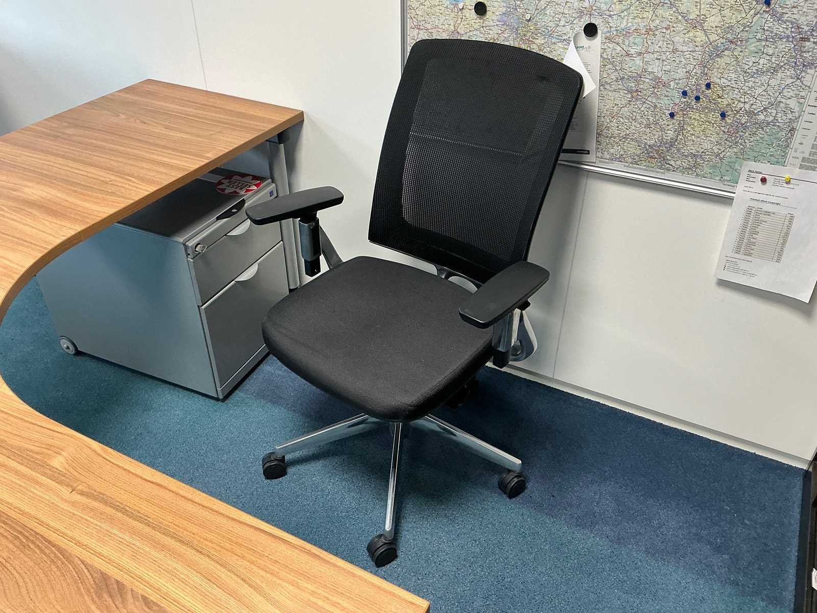 Bestaande uit een bureaustoel, ladeblok en het bureau. Monitoren, desktop en andere apparatuur niet meegeleverd. Lengte: 160cm Breedte: 200cm Hoogte: 75cm