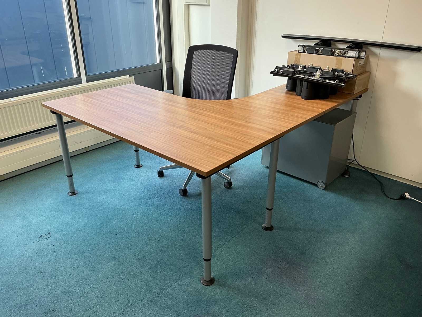 Bestaande uit een bureaustoel, ladeblok en het bureau. Monitoren, desktop en andere apparatuur niet meegeleverd. Lengte: 160cm Breedte: 200cm Hoogte: 75cm