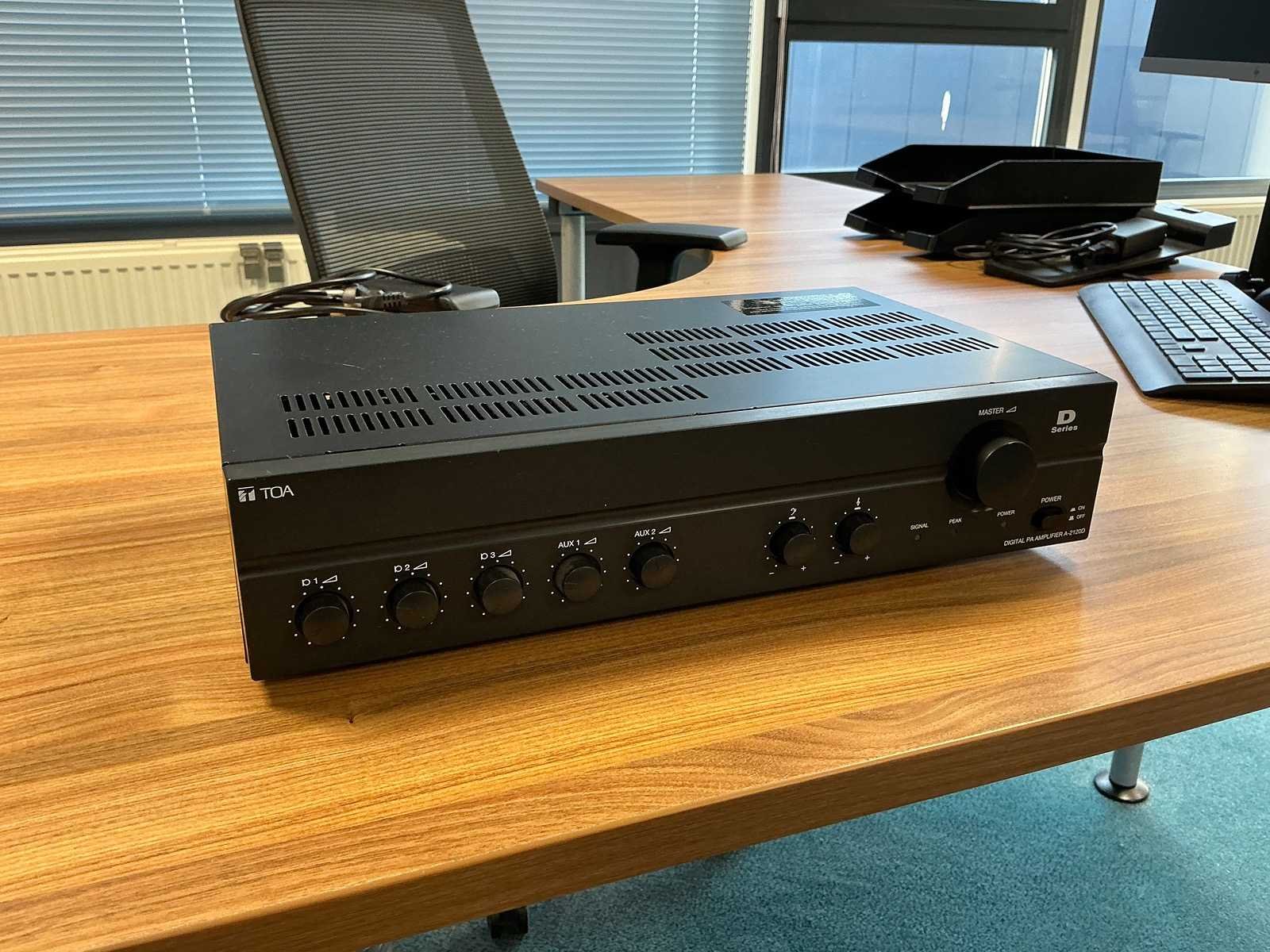 Merk: TOA Type: A-2120D Aansluiting: 230V Totale afmeting L: 420mm Totale afmeting Breedte: 250mm Totale afmeting Hoogte: 100mm