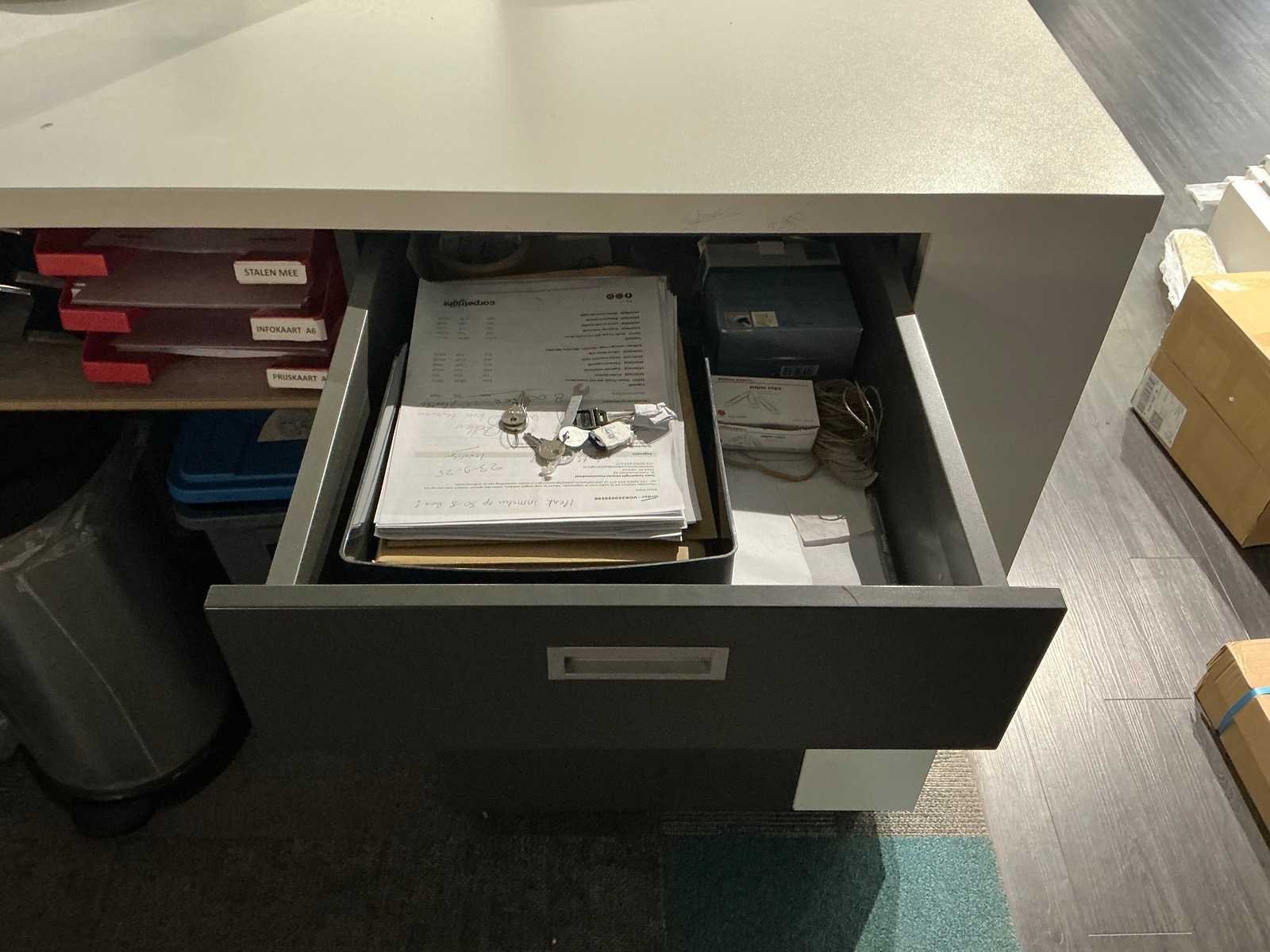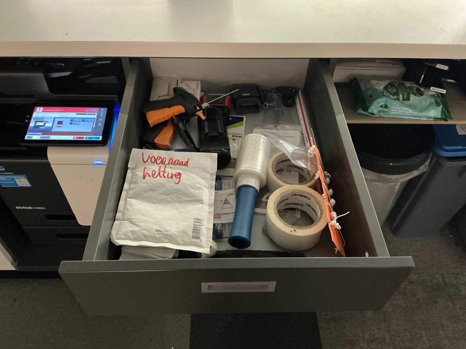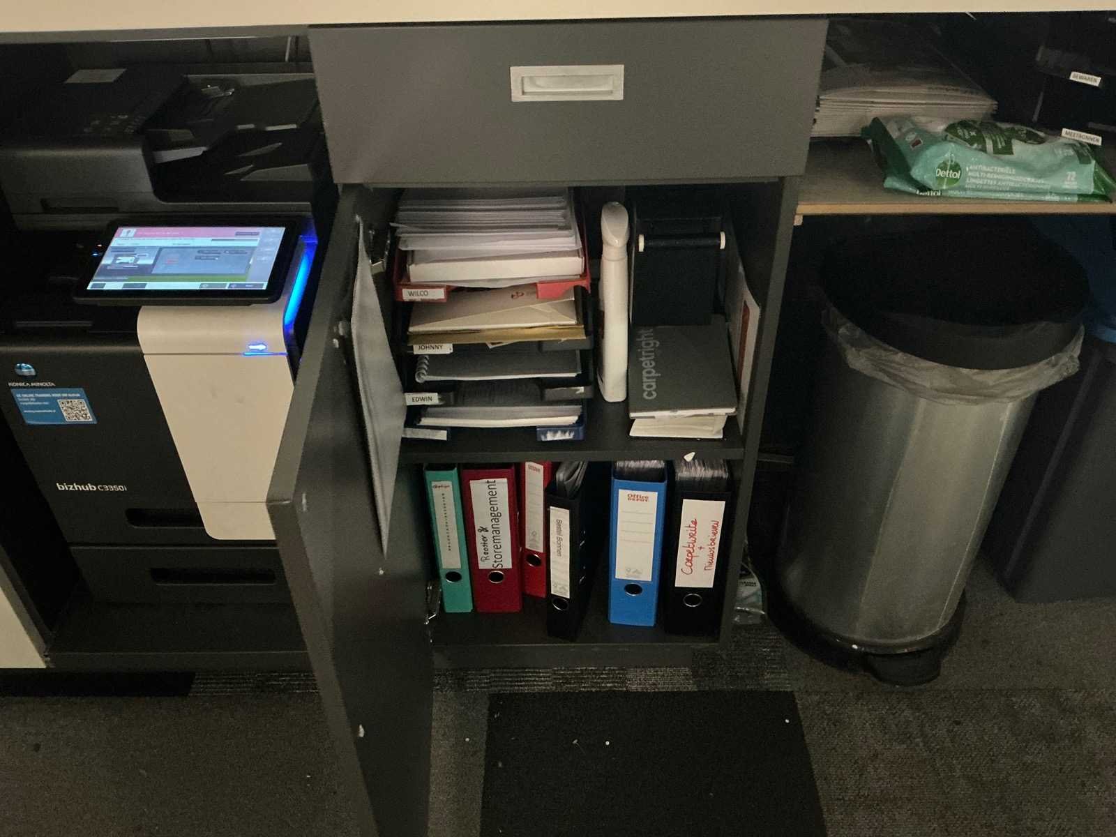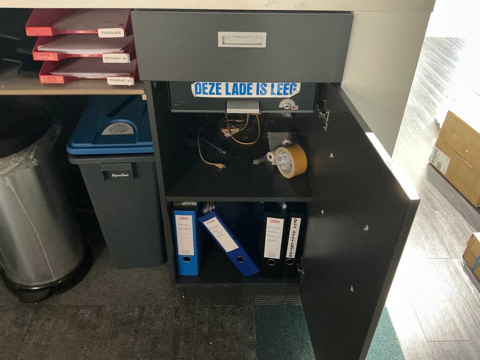 Dit kavel dient door de koper professioneel gedemonteerd te worden. Inclusief inhoud. Eventuele administratie en ICT horen niet bij het kavel. Exclusief printer en tafel Totale afmeting L: 3000mm Totale afmeting Breedte: 800mm Totale afmeting Hoogte: 2800mm