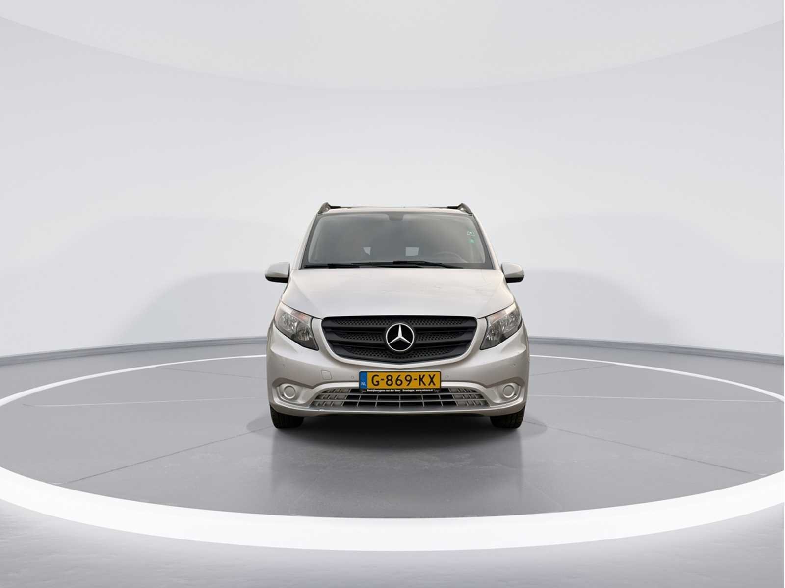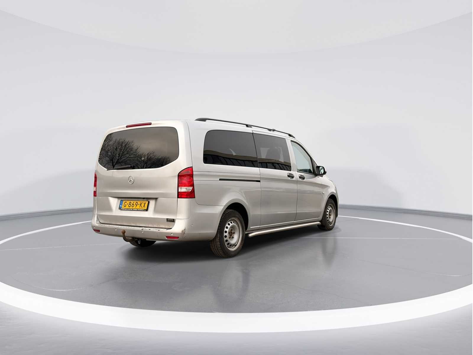 AIRCO | CRUISE Kenteken: G-869-KX Merk: Mercedes-Benz Model: Vito Tourer Type: 116 BT Pro Extra Lang Bouwjaar: 2018 Afgelezen kilometerstand: 172762km Cilinderinhoud: 2143cc Vermogen (kW): 120kW Brandstof: Diesel Chassisnummer: WDF44770513430970 Datum eerste toelating: 2018-04-30 Datum eerste toelating (NL): 2019-11-07 Vermogen (pk): 161hp Aandrijving: RWD Aantal zitplaatsen: 9 Maximaal trekgewicht ongeremd: 750kg Maximaal trekgewicht geremd: 2000kg Kleur: grijs Transmissie: Automaat Emissieklasse: 6 Aantal deuren: 4 Aantal sleutels: 1 Ledig gewicht: 1910kg Bruto BPM (NL): 18394€ Aantal cilinders: 4 Carrosserie: MPV Nationaliteit documenten: Nederlands Onderhoudshistorie: Aanwezig danwel digitaal Carfax Link: https://was.carfax.eu/v0/api/ccdid/5100016408/svc/201/vinreg/G869KX/checksum/eyJhbGciOiJIUzI1NiIsInR5cCI6IkpXVCJ9.eyJleHAiOjE3NzY2OTc2NDF9.lTQ-kHua3Q74JxXkr9b_S75oOBe8h6_NwaoOhgFYWwc Start en rijdt: Start and drive startinformatie : Start en rijdt Self drive export possible : false Airconditioning: true Navigatie: true LED-koplampen: false