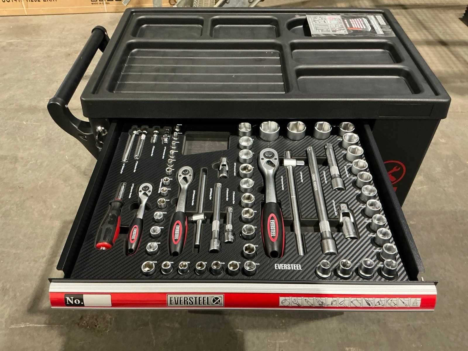 Voorzien van 6 laden, 4 laden gevuld met diverse gereedschappen en accessoires, ongebruikt in doos Merk: Eversteel