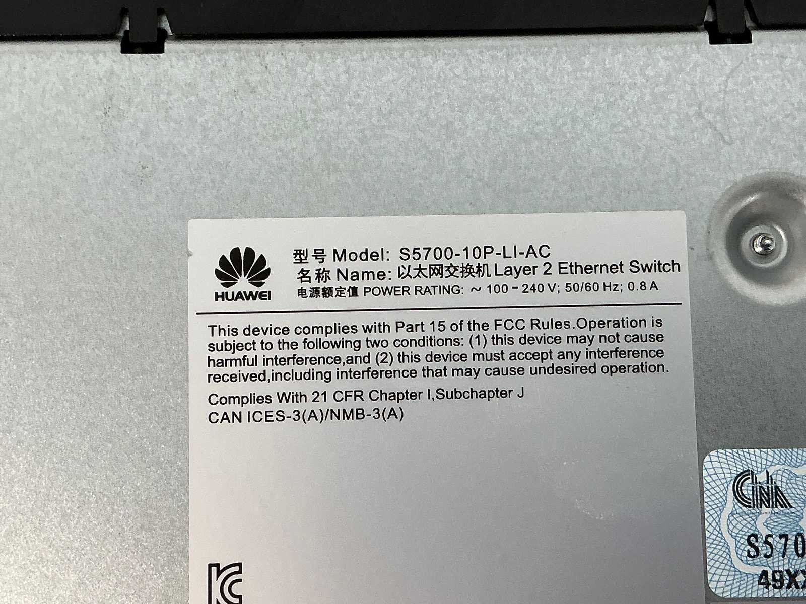 Merk: Huawei Type: S5700-10P-LI-AC Lengte: 25cm Breedte: 19cm Hoogte: 5cm