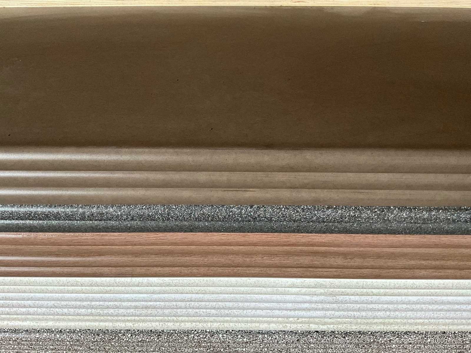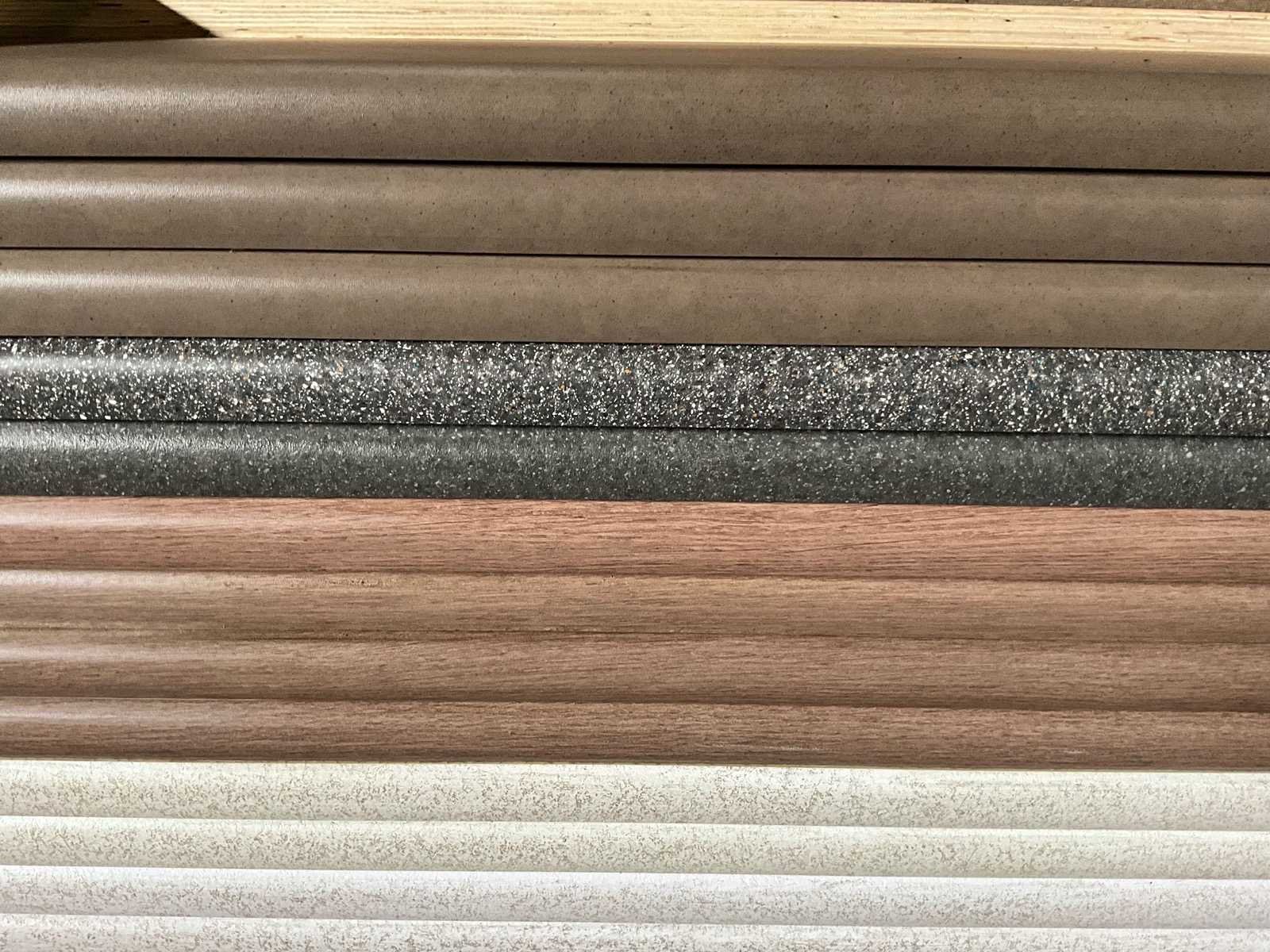 Interblad keukenblad met een ondergrond van watervast verlijmd multiplex met daarop een harde toplaag van hpl (high pressure laminate) Circa 29 stuks, diverse afmetingen Diepte: 600mm Dikte: 32mm - Circa 130 strekkende meter - 3x keukenblad 360x60x3cm - 14x keukenblad 410x60x3cm - 1x keukenblad 470x60x3cm - 11x keukenblad 520x60x3cm