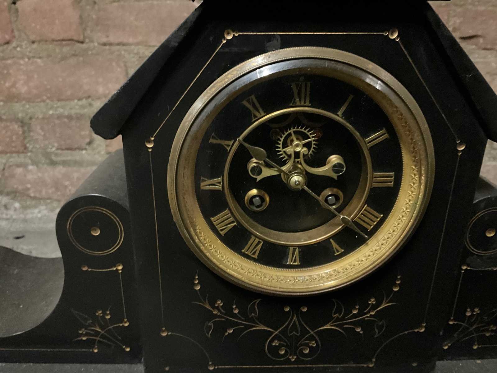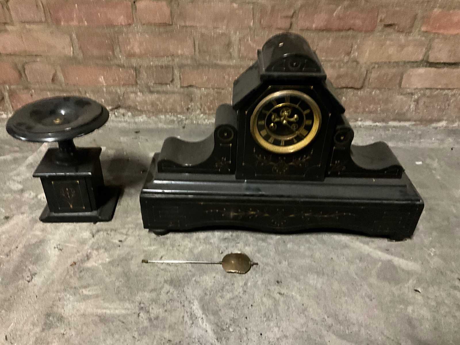 Klassieke schouwpendule v.v. klok + 2x kandelaar