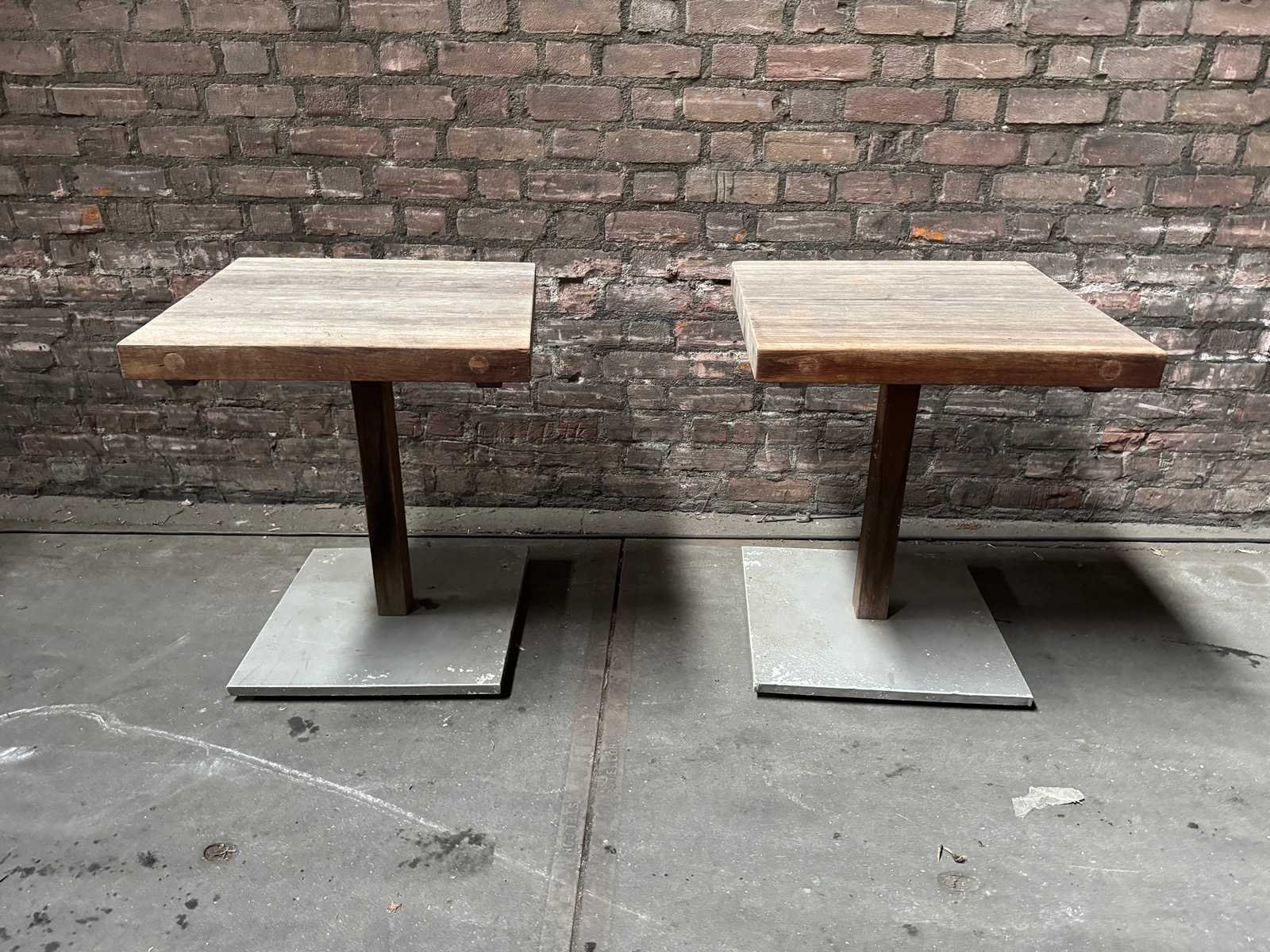 Hardhouten tuintafel 60x60x70cm v.v. metalen voet (6x)