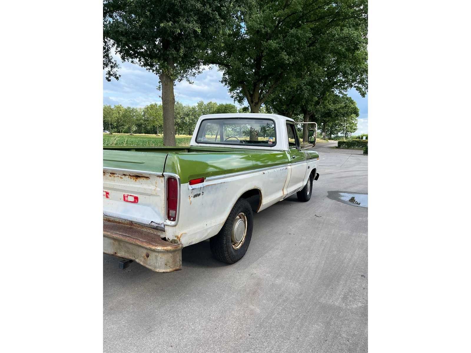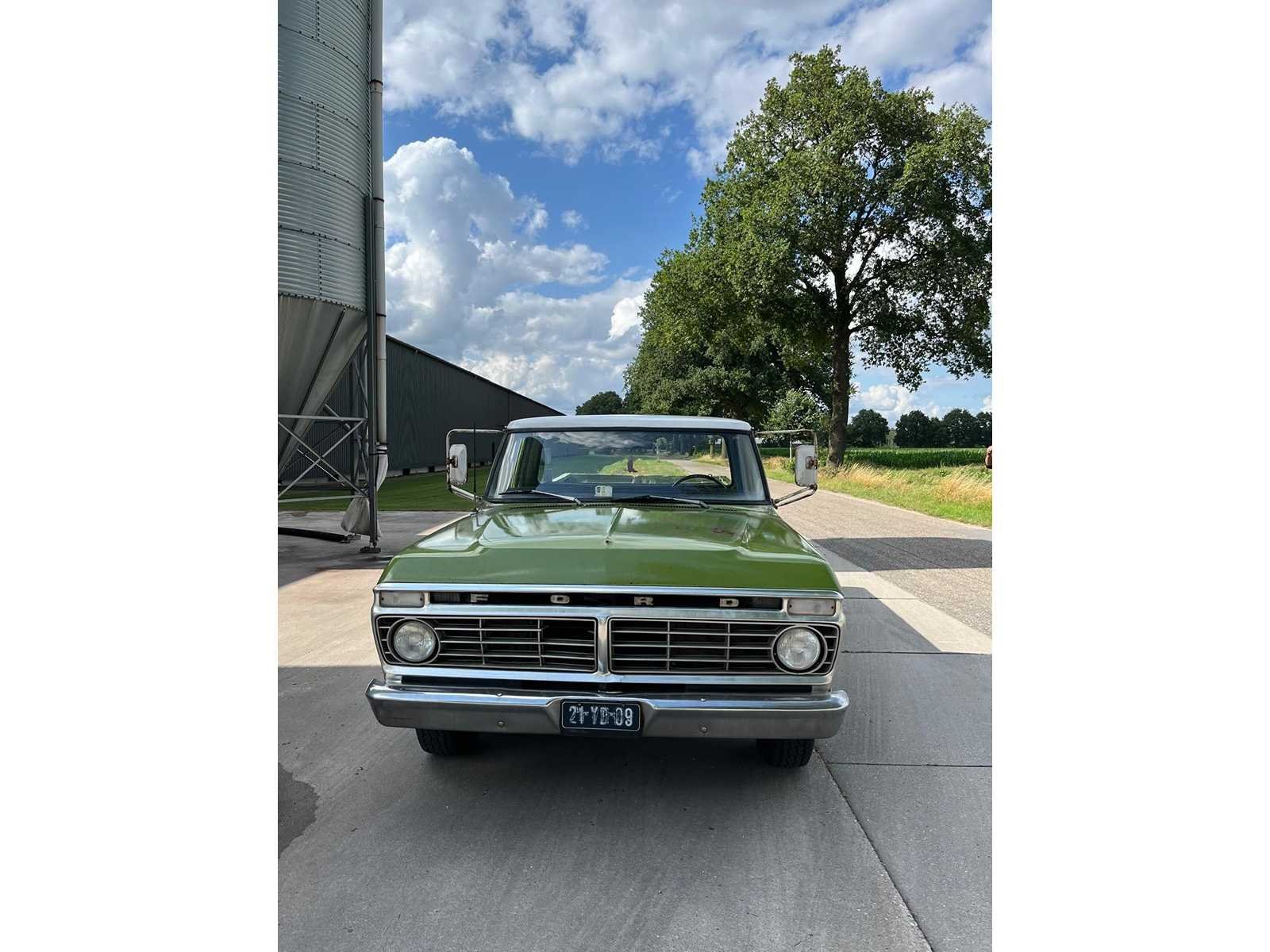 Een prachtige en karaktervolle Ford F100 pick-up, een echte Amerikaanse oldtimer die stijl, eenvoud en betrouwbaarheid uitstraalt. Deze iconische klassieker combineert nostalgische charme met robuuste functionaliteit. Deze F100 valt direct op door zijn fraaie two-tone kleurstelling in fris wit met olijfgroene accenten – een perfecte combinatie die zijn vintage uitstraling extra benadrukt. De klassieke grille met het herkenbare FORD-embleem, de ronde koplampen en de originele stalen velgen maken het plaatje compleet. Merk: Ford Type: F-100 Bouwjaar: 1974 Brandstof: LPG Nationaliteit documenten: Nederland Carrosserie: Pick-Up Truck Transmissie: Automaat