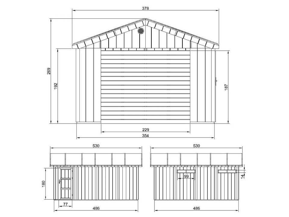 "Deze prefab constructie vertelt het verhaal van een doordacht ontworpen buitenruimte waarin comfort, stevigheid en functionaliteit samenkomen. De wanden zijn opgebouwd uit een robuust houten frame van 60 x 60 mm, afgewerkt met duurzame panelen van 10 mm dik. Dit zorgt voor een solide basis die bestand is tegen dagelijks gebruik en uiteenlopende weersomstandigheden. Met een bruikbare oppervlakte van 17,2 m² biedt deze constructie volop ruimte voor opslag, werk of hobby’s. De royale afmetingen van 354 cm breed en 486 cm lang, gecombineerd met een nokhoogte van maar liefst 269 cm en een zijwandhoogte van 192 cm, creëren een aangenaam ruimtelijk gevoel. Het dak meet 378 x 530 cm en heeft aan de voorzijde een dakoverstek van 22 cm, wat extra bescherming biedt tegen regen en zon. Het dak is opgebouwd uit waterdichte OSB-3 dakpanelen van 12 mm dik en wordt standaard geleverd met grijs bitumen dakleer als eerste dakbedekking. Dankzij een dakbelasting tot 120 kg/m² staat de constructie garant voor betrouwbaarheid en stabiliteit. Voor een strakke afwerking zijn voorgevormde metalen dakranden in grijs inbegrepen. Licht en ventilatie zijn zorgvuldig meegenomen in het ontwerp. Smalle, geïntegreerde glazen ramen van 14 x 99 cm laten daglicht binnen, terwijl een ventilatierooster zorgt voor een gezond binnenklimaat. De enkele deur van 77 x 180 cm is voorzien van een slot en handgreep en biedt veilige en comfortabele toegang. Voor extra gebruiksgemak is de constructie uitgerust met een elektrisch rolluik, geleverd met twee afstandsbedieningen. De levering is compleet met montagemateriaal, zoals houtschroeven en scharnieren, evenals een duidelijke montagehandleiding. Houten hoeklijsten zorgen voor een nette en verzorgde afwerking. De vloer is niet inbegrepen, waardoor je zelf de vrijheid hebt om een ondergrond te kiezen die past bij jouw situatie. Type: Lasse Totale afmeting L: 4860mm Totale afmeting Breedte: 3540mm Totale afmeting Hoogte: 2690mm