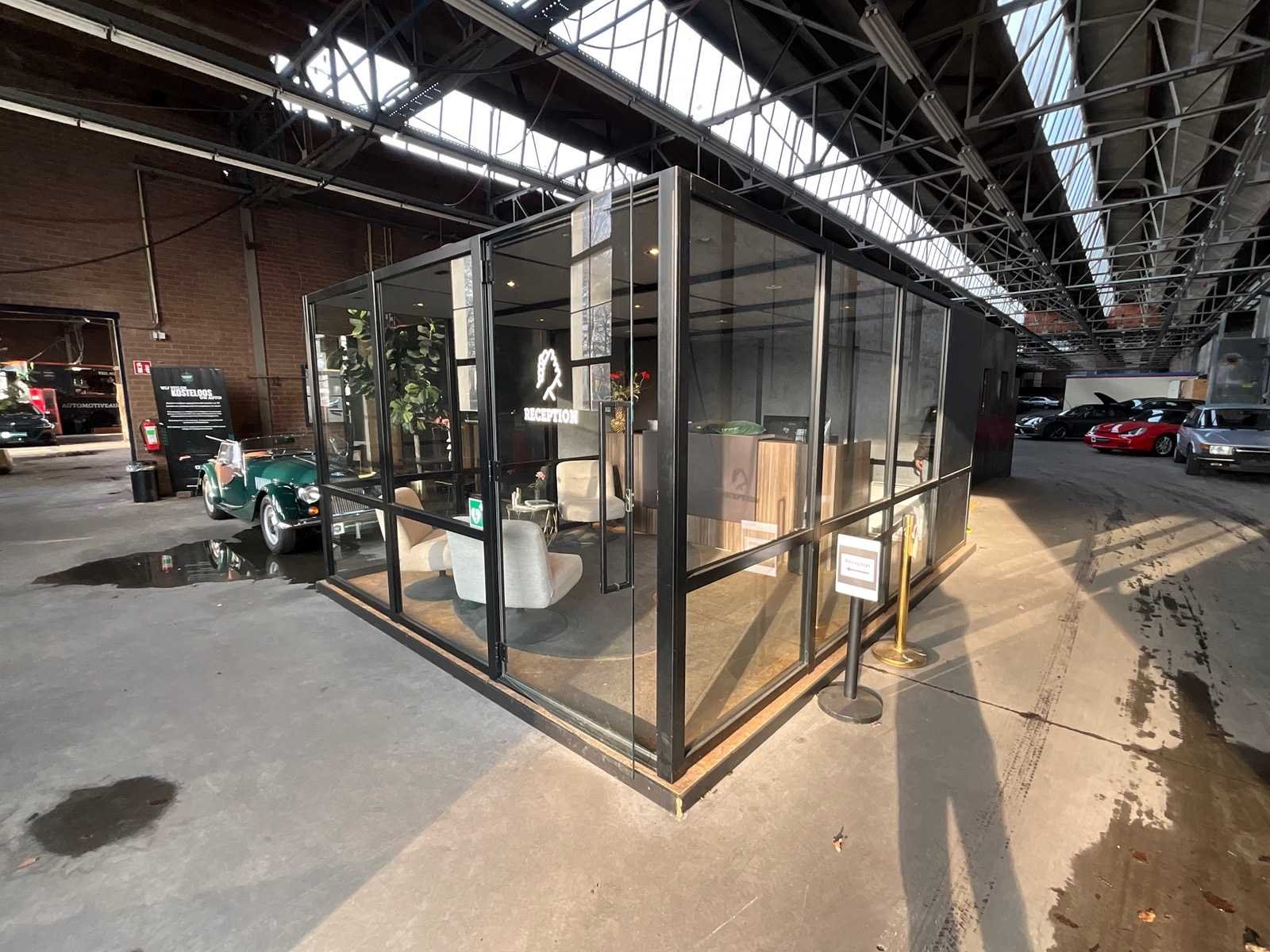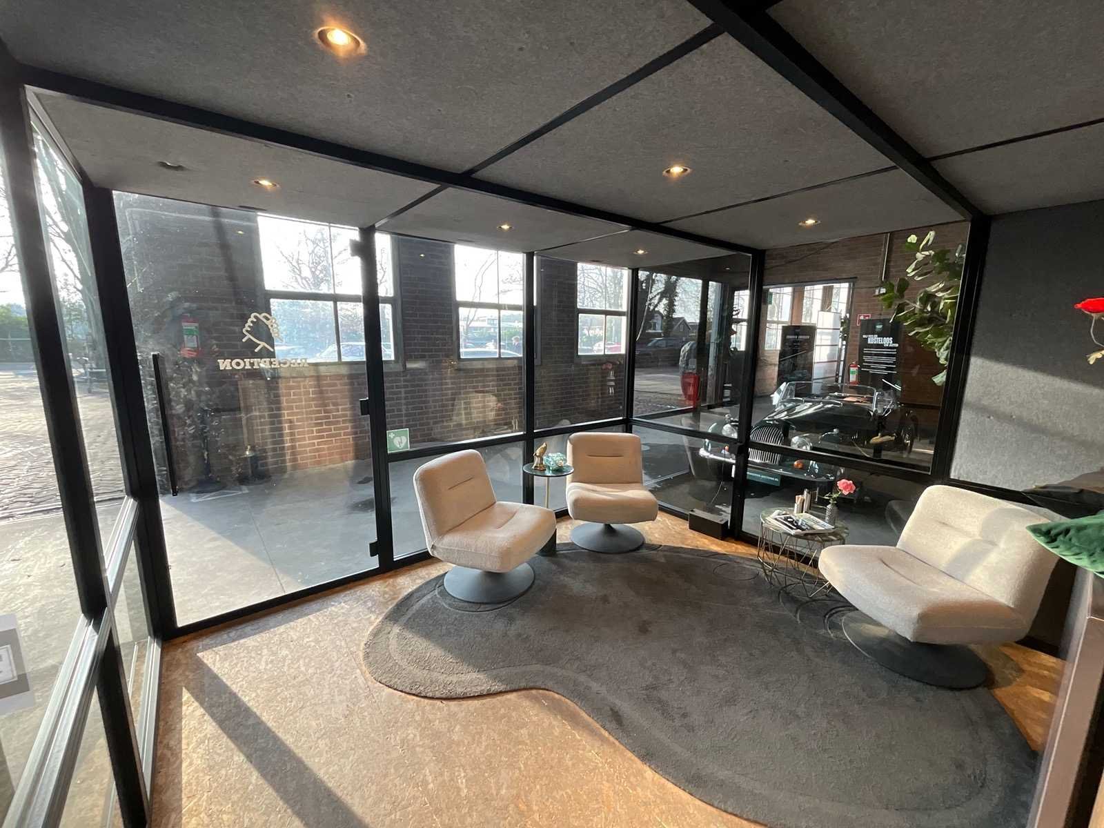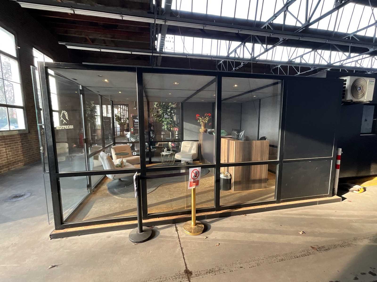 Bow - demontabele kantoorunit 500x360x225cm v.v. ontvangstbalie, airco unit