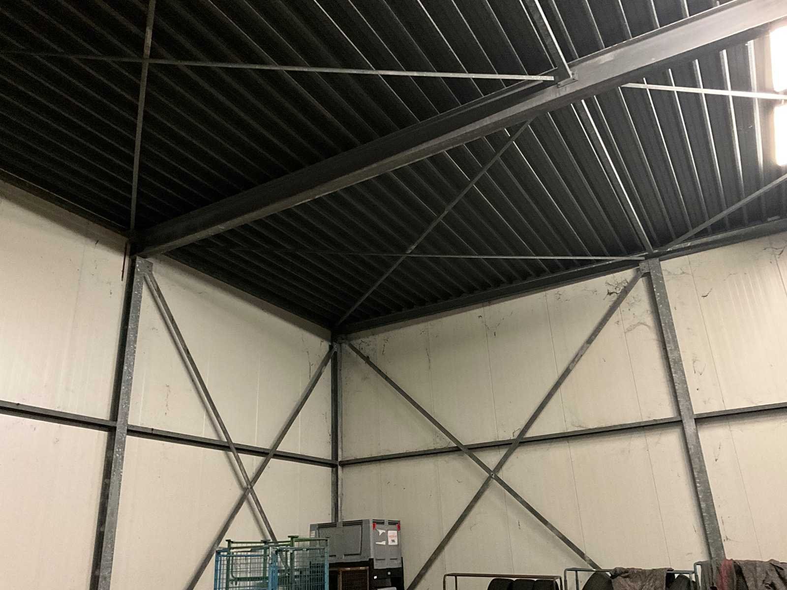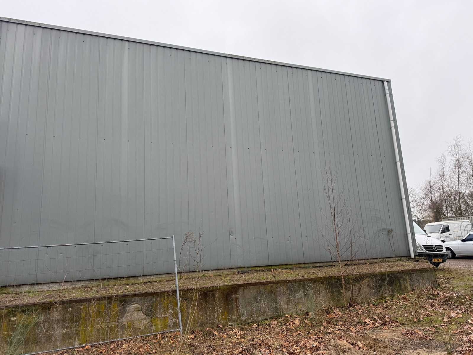 Staanders: Gegalvaniseerde stalen H-balk HEB150 6 meter (14 stuks) Ligger: Gegalvaniseerde stalen H-balk HEA400 13 meter (4 stuks) Gevelbekleding: sanwichpanelen Dakbekleding circa 325m2 Industriële roldeur 300x300cm + loopdeur De hal is vrijstaand geconstrueerd. 2 wanden + dak bekleed Totaal oppervlakte: 325m² Totale afmeting L: 25000mm Totale afmeting Breedte: 13000mm Totale afmeting Hoogte: 6000mm