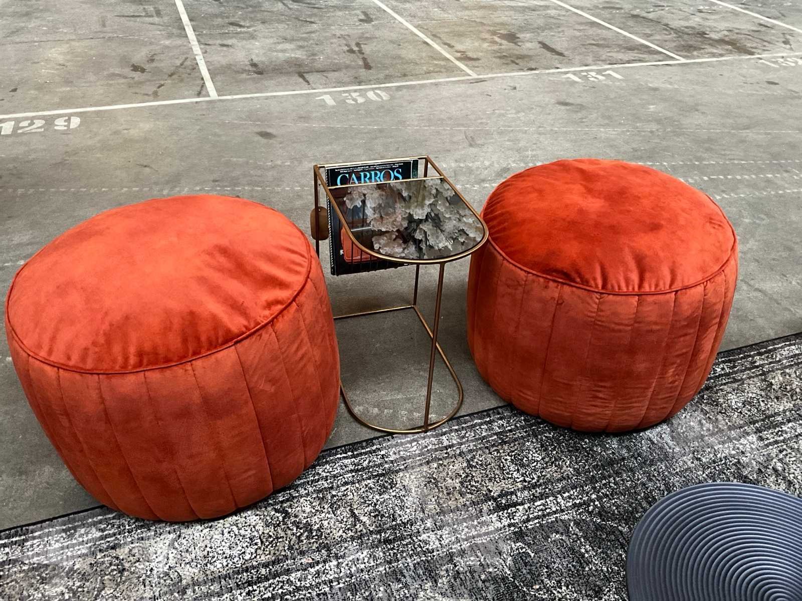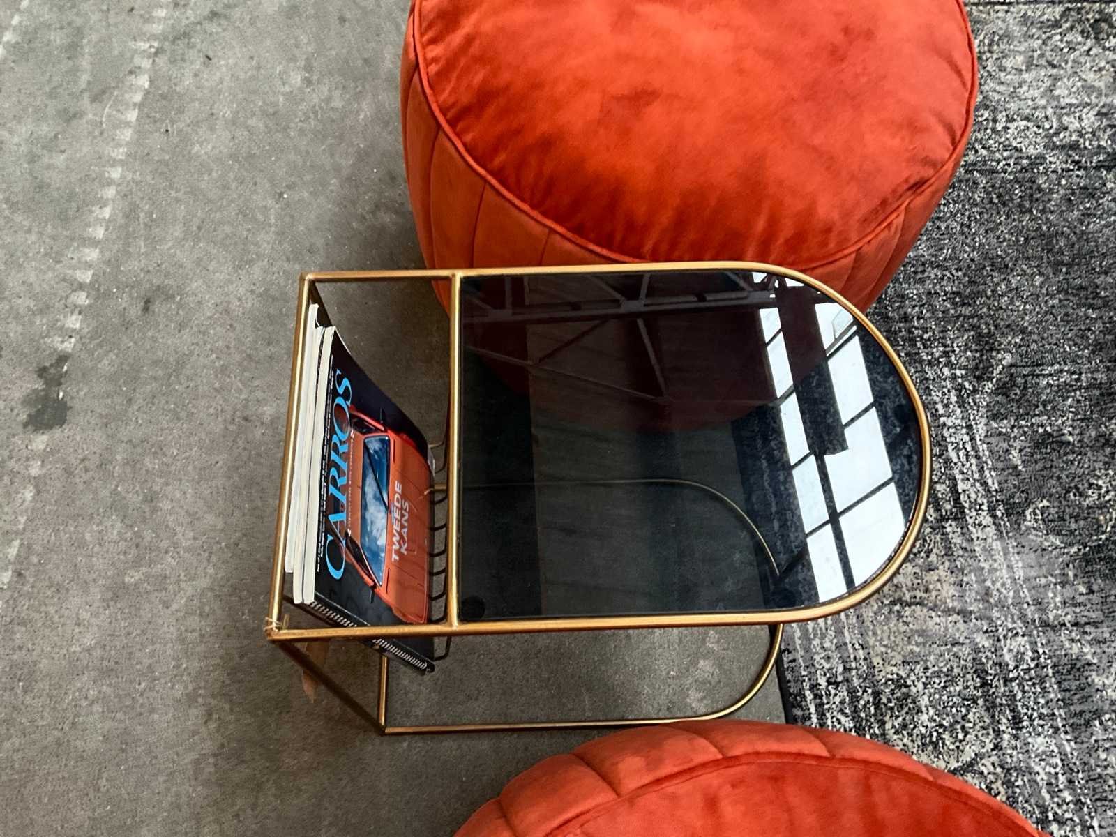 2x zitpouf ø60cm + dutch bone bijzettafel