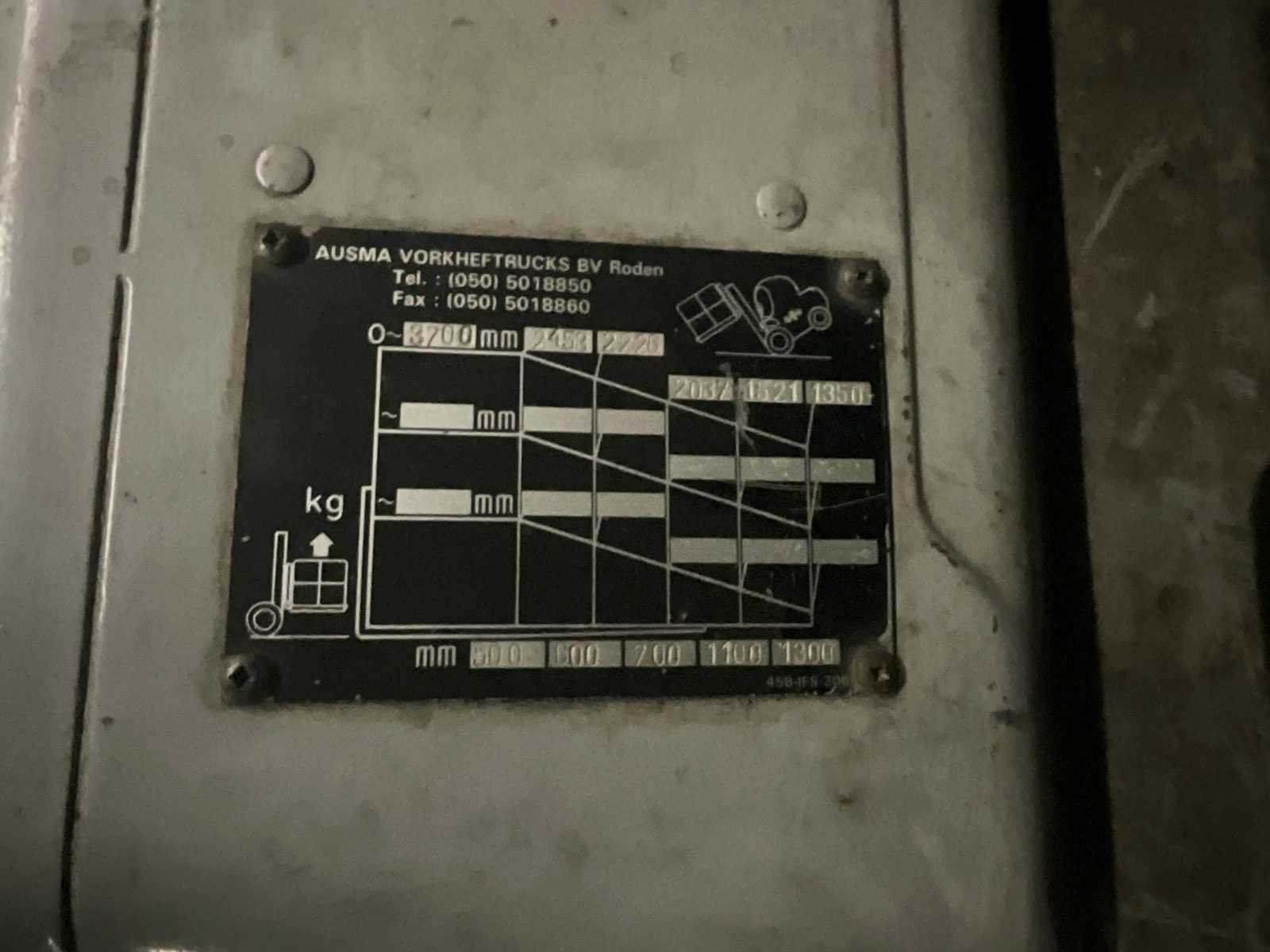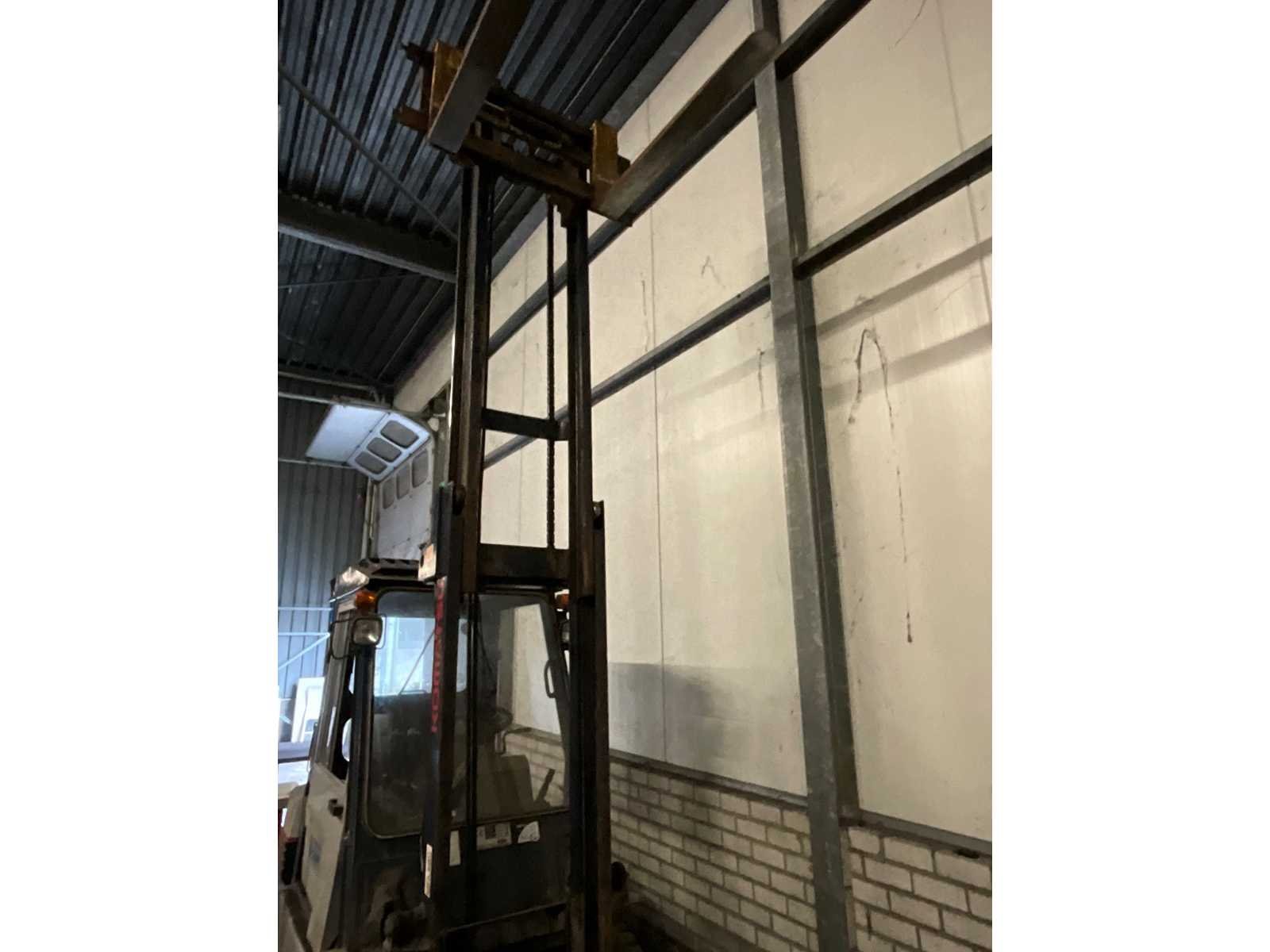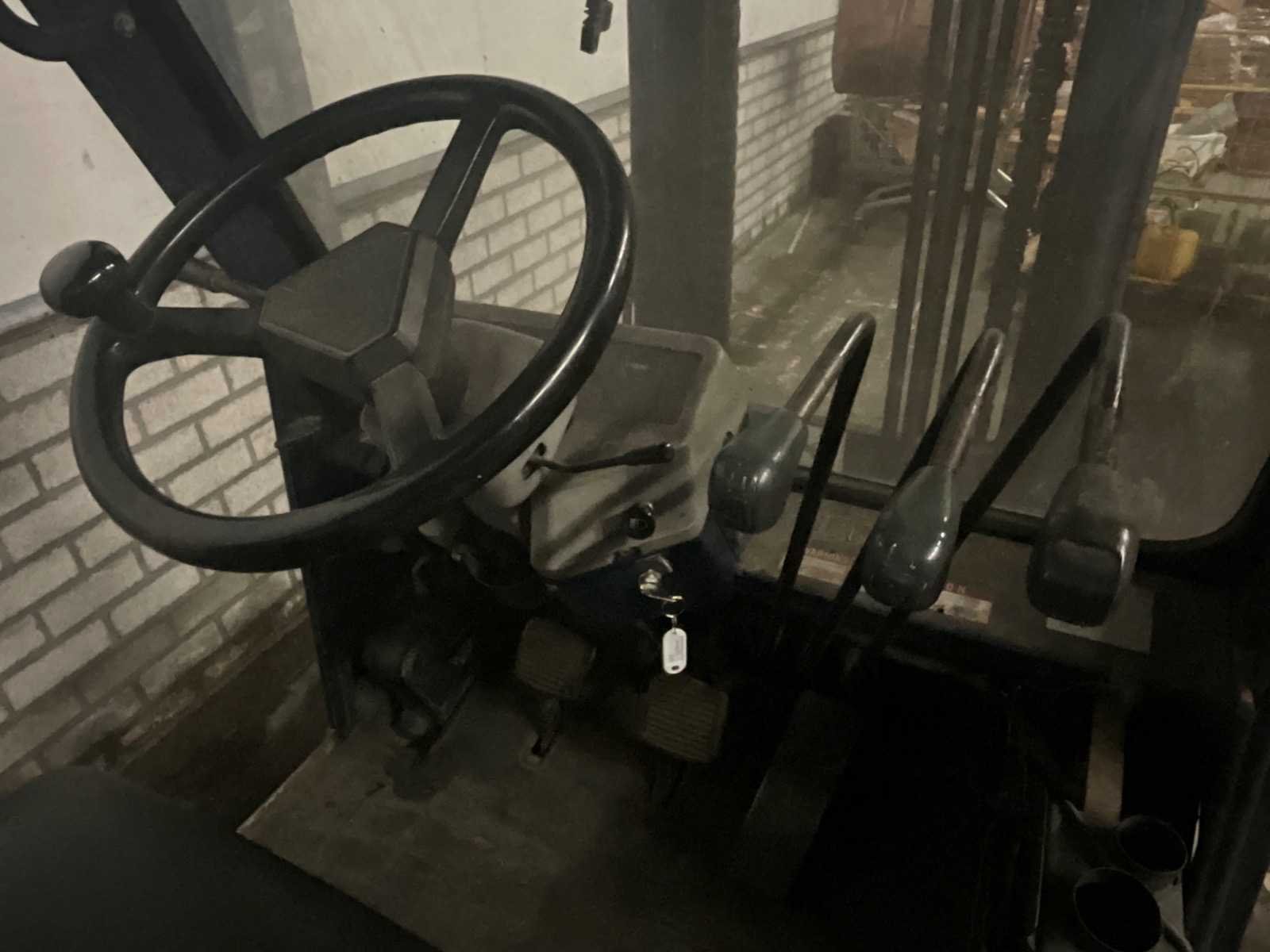 Merk: Komatsu Type: FG25T Bouwjaar: 1990 Brandstof: LPG Aantal wielen: 4 Afgelezen urenstand: 5202 Side-shift: true Duplex mast: true Eigen gewicht: 3850kg Hefvermogen: 2500kg Hefhoogte: 3700mm Luchtbanden: true Minimale doorrijhoogte: 2400mm LPG: true