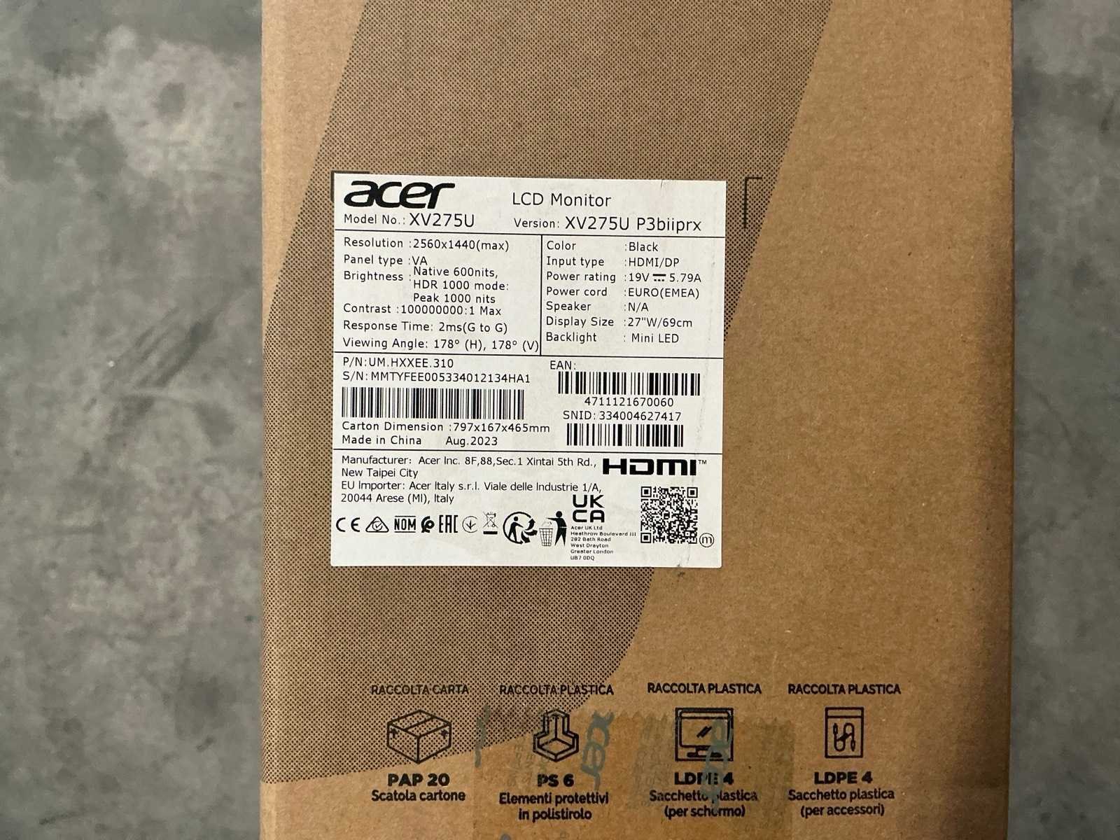 Acer nitro xv275u monitor
