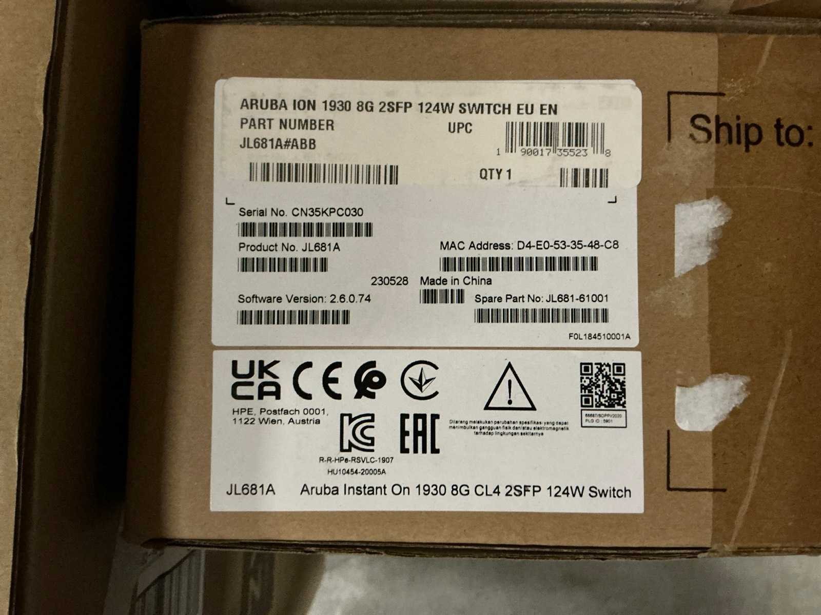 Aruba instant on 1930 8g cl4 2sfp 124w switch